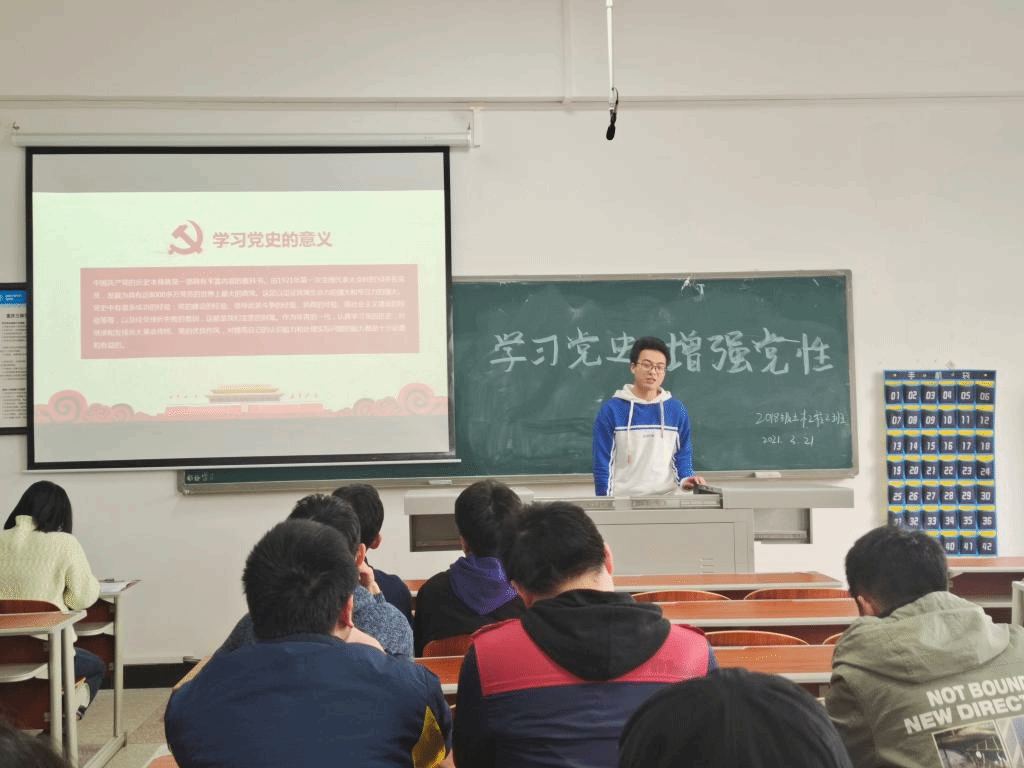 3月21日,公司党总支员工党支部党员向阳平在慎思楼 5栋421教室以“学习党史 增强党性”为题,为2018级土木工程专业2班全体党团员讲党史“微党课”。