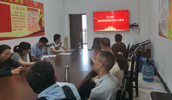 第一阶段,党支部书记刘芳平以“在疫情中领悟党史 牢记初心使命”为主题,给党支部全体党员上了一堂党课。党课主要从党史的发展脉络及重大意义、党的历史给我们的三大启示、中国共产党的三大历史贡献、战疫情始终牢记党的初心和使命四个方面进行.