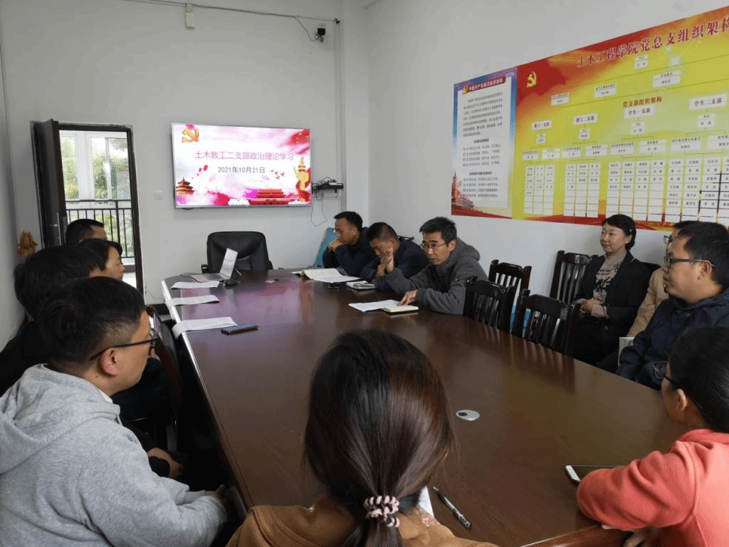 10月21日下午,公司党总支教工第二党支部全体党员在慎思楼5栋401开展集中政治学习,学习活动由党支部书记周廷强主持。