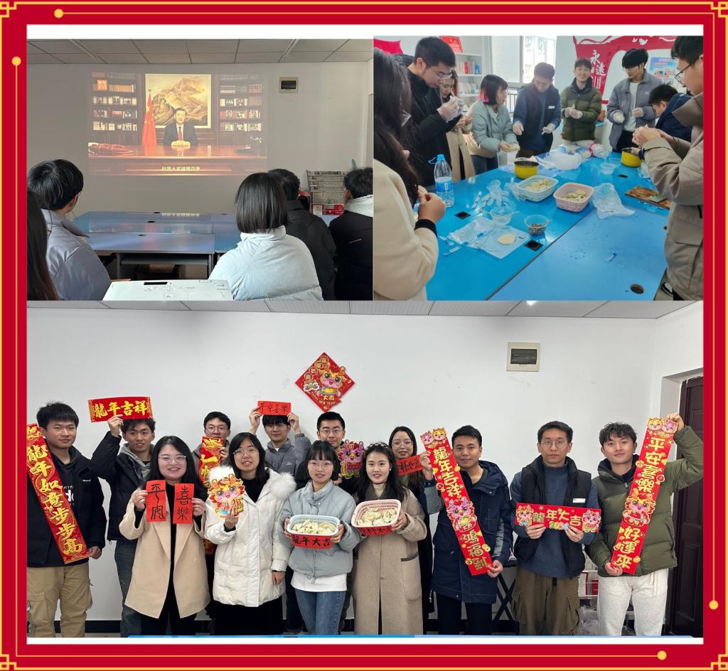 本次党日活动共有四项内容。一是党支部书记杨楠同志组织全体党员集体学习了习近平总书记二〇二四年新年贺词,感受中国前进的步伐、信心与温度;二是全体党员总结回顾去年的学习工作和生活,共话新年的美好愿景;三是全体与会人员现场包饺子,贴春联,传承中国传统文化;四是杨楠同志总结发言,千帆竞发时不我待,百舸争流奋楫者先,希望大家新年百尺竿头更进步。