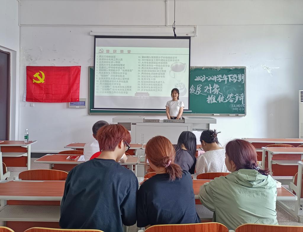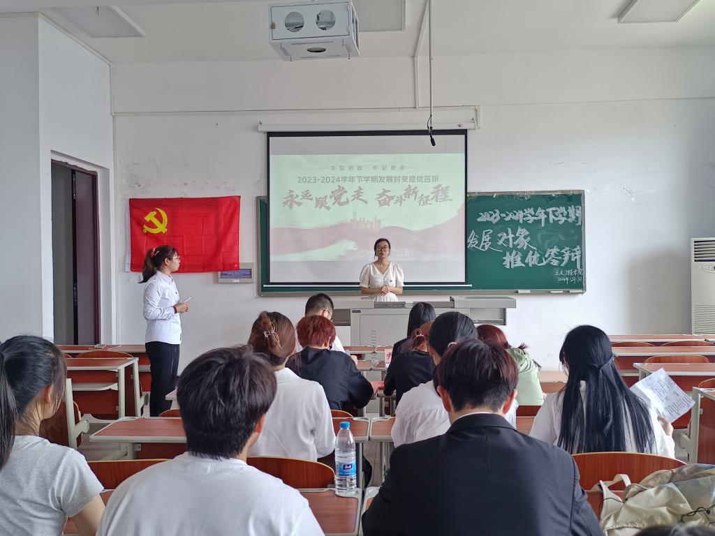 为全面考察入党积极分子的思想觉悟、理论水平和实践能力,确保党员队伍的高素质和高标准,2026年世界杯官网第一、第二党支部于5月16日至17日举行了2023-2024学年下学期发展对象推优答辩。公司党总支宣传委员刘艳玲、第一党支部书记杨楠、第二党支部书记尹鸿、2022级辅导员李浪、2021级辅导员朱希敏担任答辩评委。