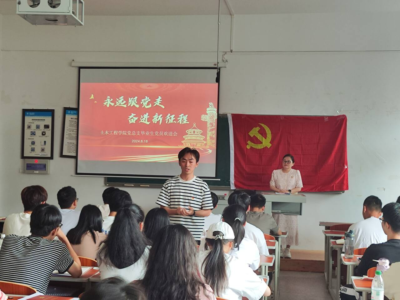 参会党员认真听课并记笔记,毕业生党员代表田祥发言表示,作为员工党员,会把纪律意识运用到实践,做到学思用贯通,知信行统一,也通过党纪学习教育为契机,赓续共产党人的精神血脉。同时作为选调生,在以后的工作岗位上会时刻严格要求自己,干干净净做事,老老实实做人,永葆政治本色。