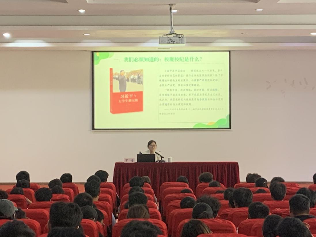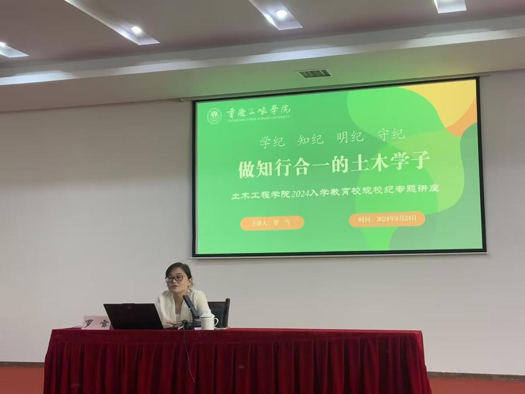 为进一步强化新生的纪律意识,引导同学们做到学纪、知纪、明纪、守纪,9月24日下午,公司党总支在明辨楼2栋104成功举办了以“学纪 知纪 明纪 守纪,做知行合一的土木学子”为主题的纪律专题教育,由公司党总支书记罗雪主讲, 2024级全体新生参加。
