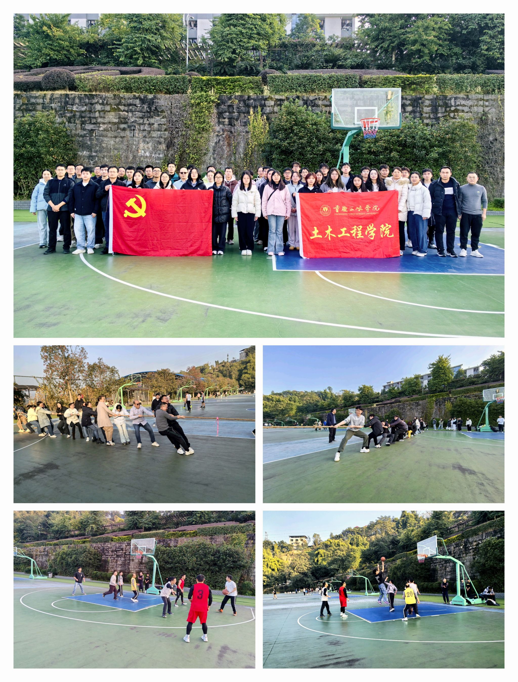 活动伊始,开展趣味拔河比赛,参赛队伍由师生混合编组而成。赛场上,口号铿锵,助威阵阵,师生们同心协力,在呐喊与汗水中不仅锻炼了体魄,也生动诠释了科学运动、健康体重管理的积极意义。随后进行的篮球友谊赛将现场气氛推向高潮。由教工党支部代表队与员工党支部代表队展开激烈角逐。比赛中,教工队员配合默契、经验丰富,员工队员则活力充沛、技术娴熟。双方你来我往,攻防精彩,既展现了竞技体育的魅力,更赛出了风格与友谊。比赛不仅提升了参与者的身体素质,也引导广大师生树立“每个人是自己健康第一责任人”的意识,以实际行动落实体重管理和健康促进要求。