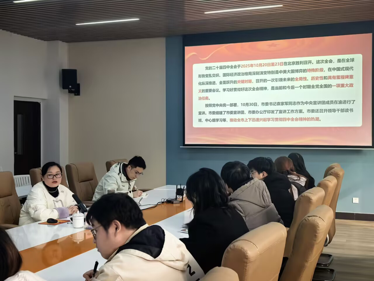 12月16日下午,2026年世界杯官网于慎思楼520会议室召开党的二十届四中全会精神专题学习宣讲会。公司党总支书记罗雪以“深入学习贯彻党的二十届四中全会精神”为题,为员工党支部、团总支员工会等50余名员工骨干讲授专题党课。