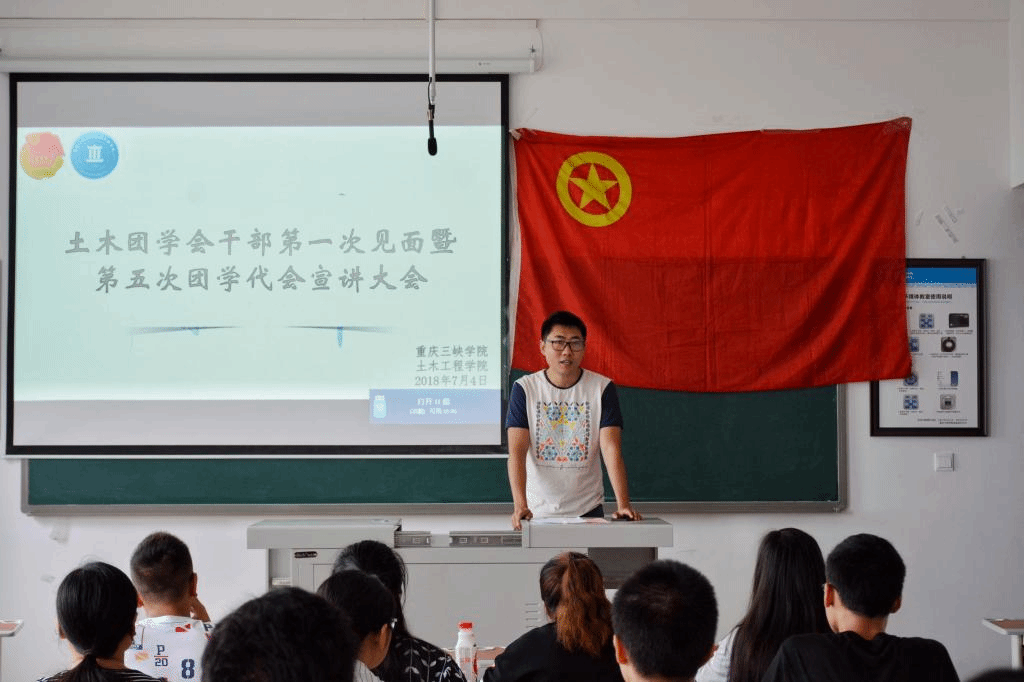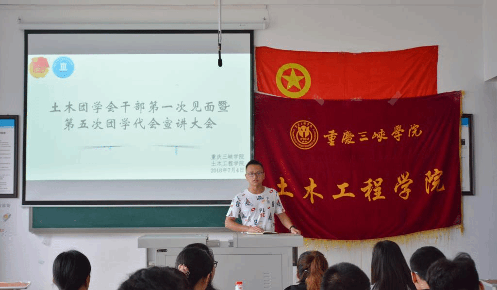 为进一步促进公司团学会各部门之间的工作交流与互动,增强员工干部的凝聚力和责任意识,落实公司第五届团代会的工作要求,7月4日上午,土木公司团学会干部第一次见面暨第五次团学代会宣讲大会在实验楼D1-308教室召开,团总支副书记洪鹏老师及2018届主席团成员出席会议并宣讲,公司全体团学干部参加会议。