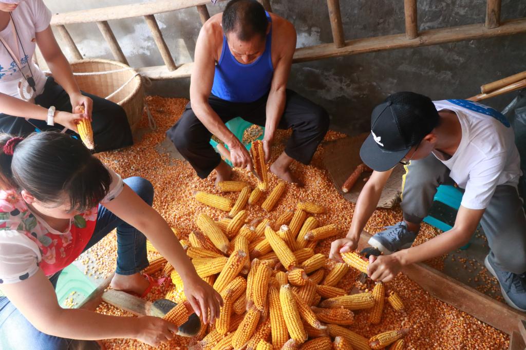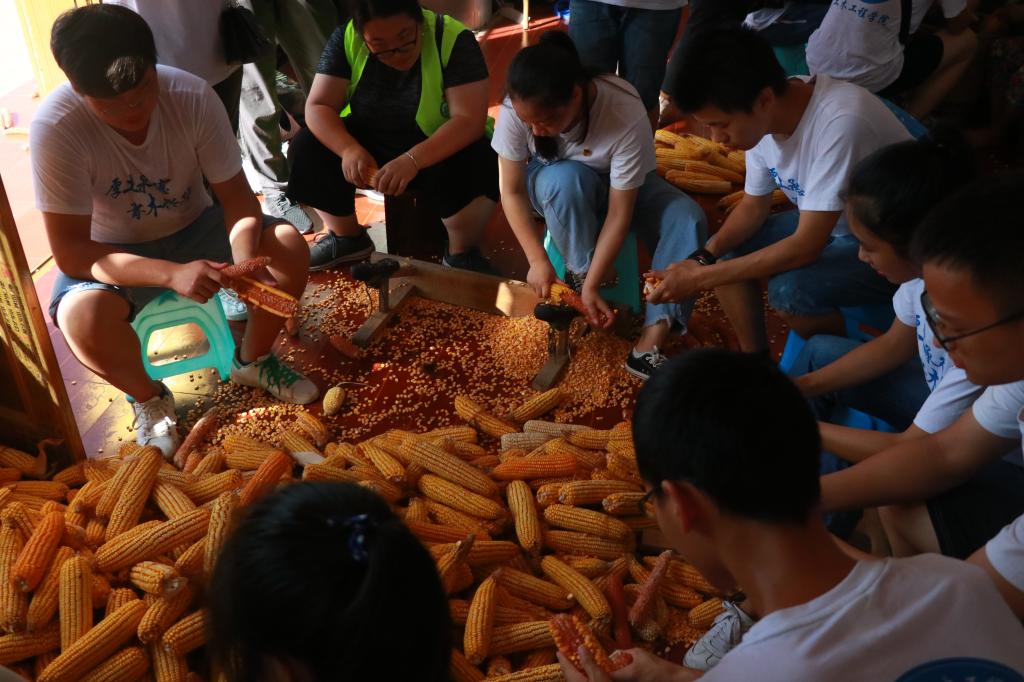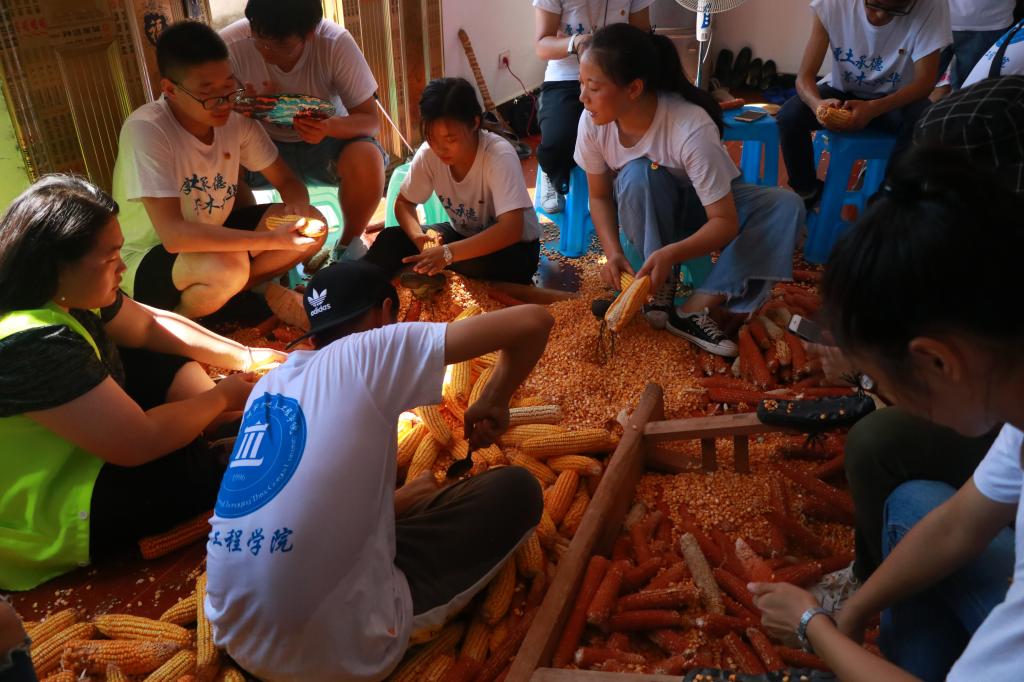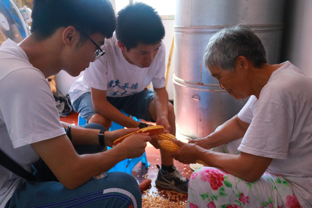 志愿者们走进甘宁镇甘宁乡吴奶奶家,用实际行动为吴奶奶送去夏日的清凉。时值酷暑,吴奶奶家正在剥玉米,左右两户人家的玉米加起来足足堆了半个屋子。教育关爱服务实践团共24位志愿者一到吴奶奶家就开始干起活儿来,帮助吴奶奶剥玉米,晒玉米粒。志愿者们在劳动过程中与吴奶奶热情的聊着家常,并在过程中向吴奶奶耐心细致的讲解国家的扶贫政策和当地政府落实国家扶贫政策的相关举措。临走前,吴奶奶紧紧抓住志愿者的手,对志愿者们表示十分的感谢,吴奶奶说“这些玉米是我们前后两户一起的,我们自己剥至少得剥两天。现在国家政策好,你们这些老员工都好,帮我们干活儿,还清扫屋子,我们老俩口的日子也越过越好了。”