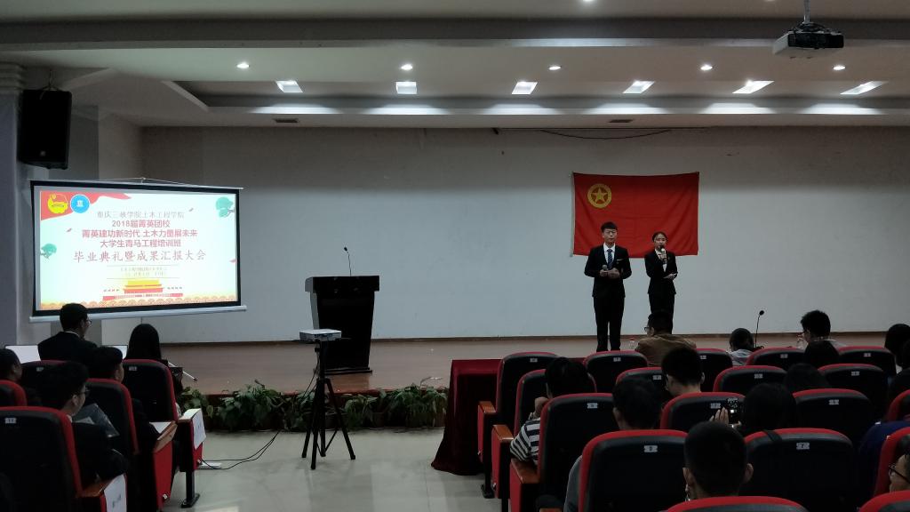 10月28日晚19:00,2026年世界杯官网在明辨楼2栋104举办了以“菁英建功新时代,土木力量展未来”为主题的“菁英团校”结业典礼暨成果汇报大会。公司党总支副书记张小梅、团总支副书记兼学工办副主任及2017级辅导员洪鹏、2015级辅导员王刚、2018级辅导员何琪参加会议并担任评委。全体团学干部干事以及2018级新生参与其中。