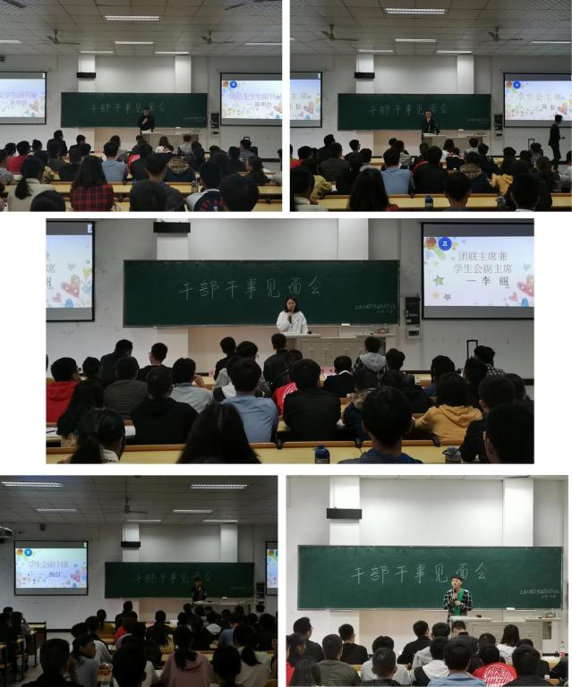 团总支书员工副书记陈明浩希望同学们能处理好人际交往礼仪,积极投身团学工作,部门之间团结友爱,共筑美好团学会家庭。员工会主席陈松希望大家争做新时代向上的优秀团员青年、珍惜光阴,珍惜平台、明确身份,坚守主业、帮得了同学,做得了表率,管得住自己。团联主席李丽要求同学们继承团学会一直以来的优良传统并将其发扬光大。员工会副主席杨印送给同学们四个字“精致优雅”,精致做事、优雅做人。员工会主席杨志仁要求同学们做到工作、学习两不误,在忙碌中寻找平衡。