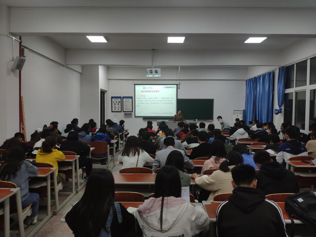 张小梅老师就肺结核、艾滋病、登革热等秋冬季易感传染病的临床症状、传染途径、危害和预防措施进行了详细介绍,要求同学们自觉养成良好的卫生习惯,把好“病从口入关”;合理安排好作息和健康饮食,做到生活有规律,避免抵抗力下降;教室、寝室每天应开窗通风,保持室内空气畅通;号召同学们积极参加体育锻炼,增强体质。