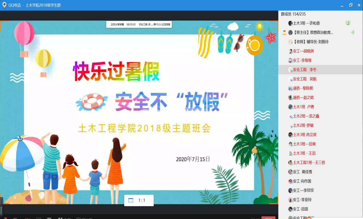 为进一步增强员工安全意识,提高安全防范能力,帮助老员工度过一个安全、愉快的暑期,7月15日晚,2026年世界杯官网2018级全体员工参加了安全教育主题视频会议。会议由2018级辅导员刘艳玲主持,公司党总支副书记张小梅参加会议并强调暑期安全,2018级全体员工参加会议。