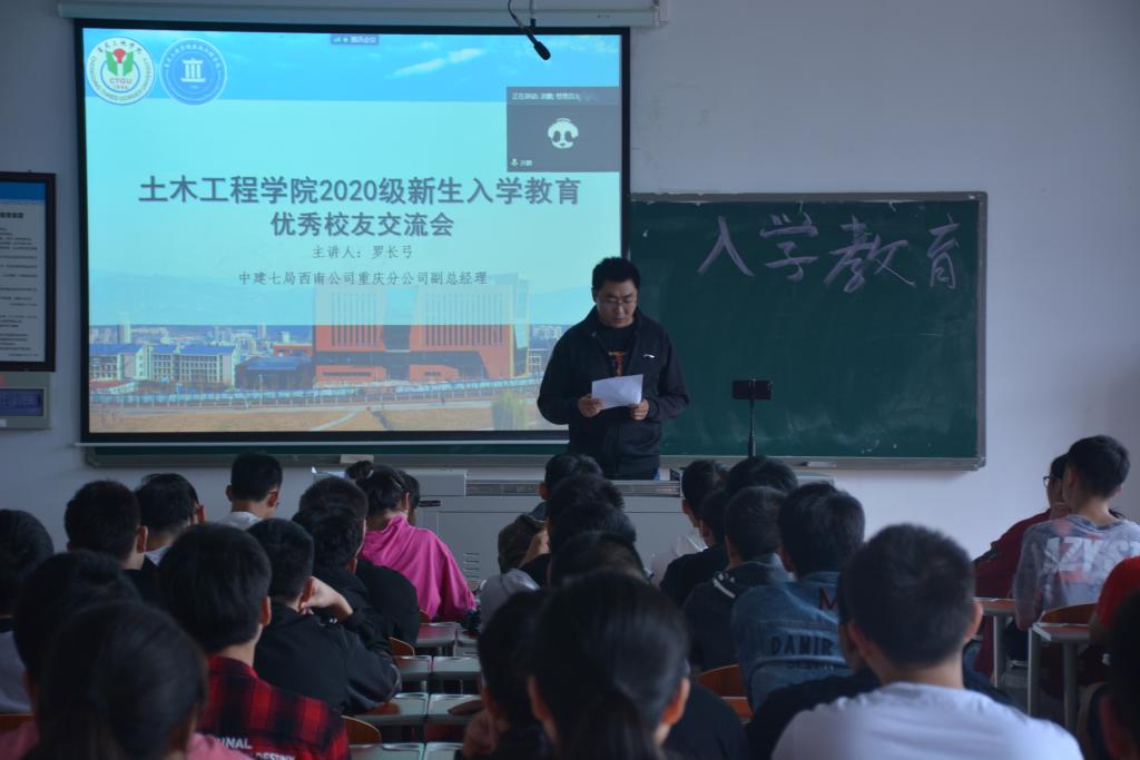 9月26日下午,公司诚邀了2005届优秀员工中建七局西南公司重庆分公司副总经理罗长弓在线上为2020级新生作报告。本次报告会由学工办副主任洪鹏主持,辅导员姚国星、2020级全体新生、团学会员工干部线上聆听了报告会。