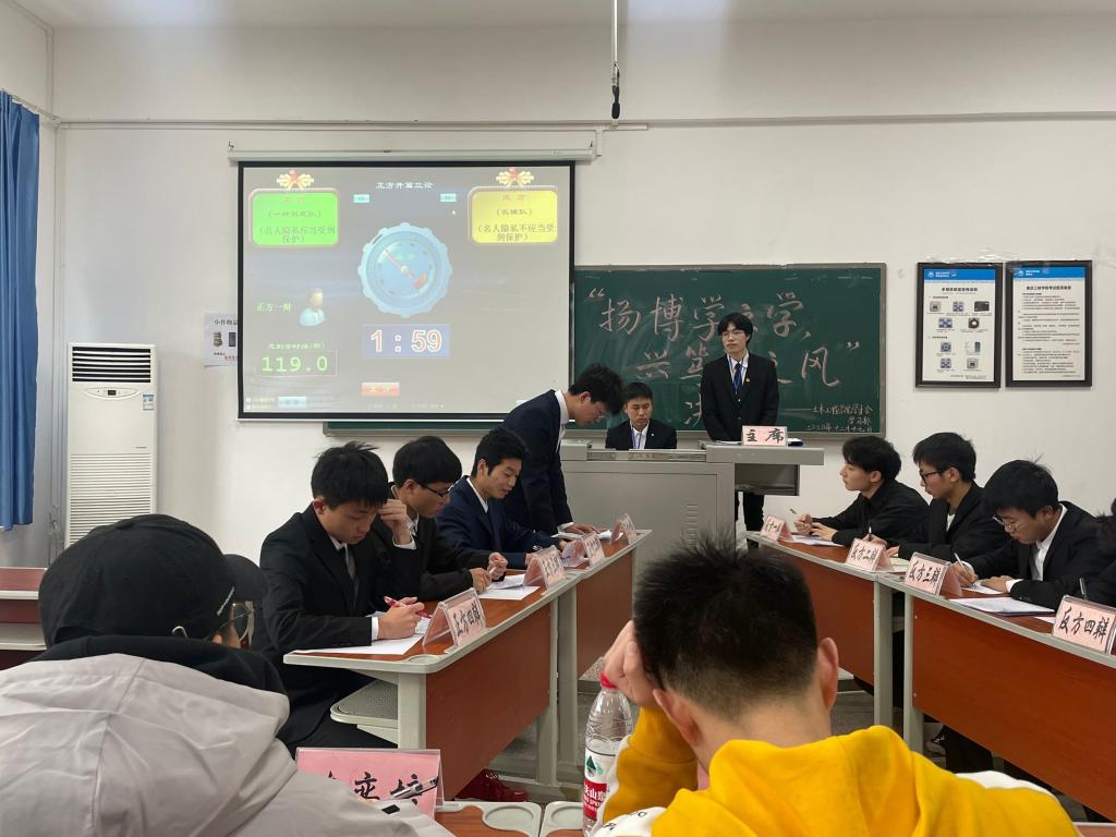 本次辩论赛由2020届主席团成员黎陈熙,2019级陈奕培、于伟航、张景祎、王海鹏同学担任评委。本次决赛共有四组参赛选手,分为两场进行。首先进行比赛的是正方“一辩到底”队与反方“长城队”以“名人的隐私是否应受到保护”为辩题展开辩论。其次是“梦之队”与“说啥都对队”就“真理是否会越辩越明”为题,分别阐述各自观点。其中,第二组的正方二辩选手罗俊与反方二辩选手鲍雅馨辩词得当,口才出众,把比赛推进至白热化阶段,观众热烈的掌声也给予了选手最佳的状态。