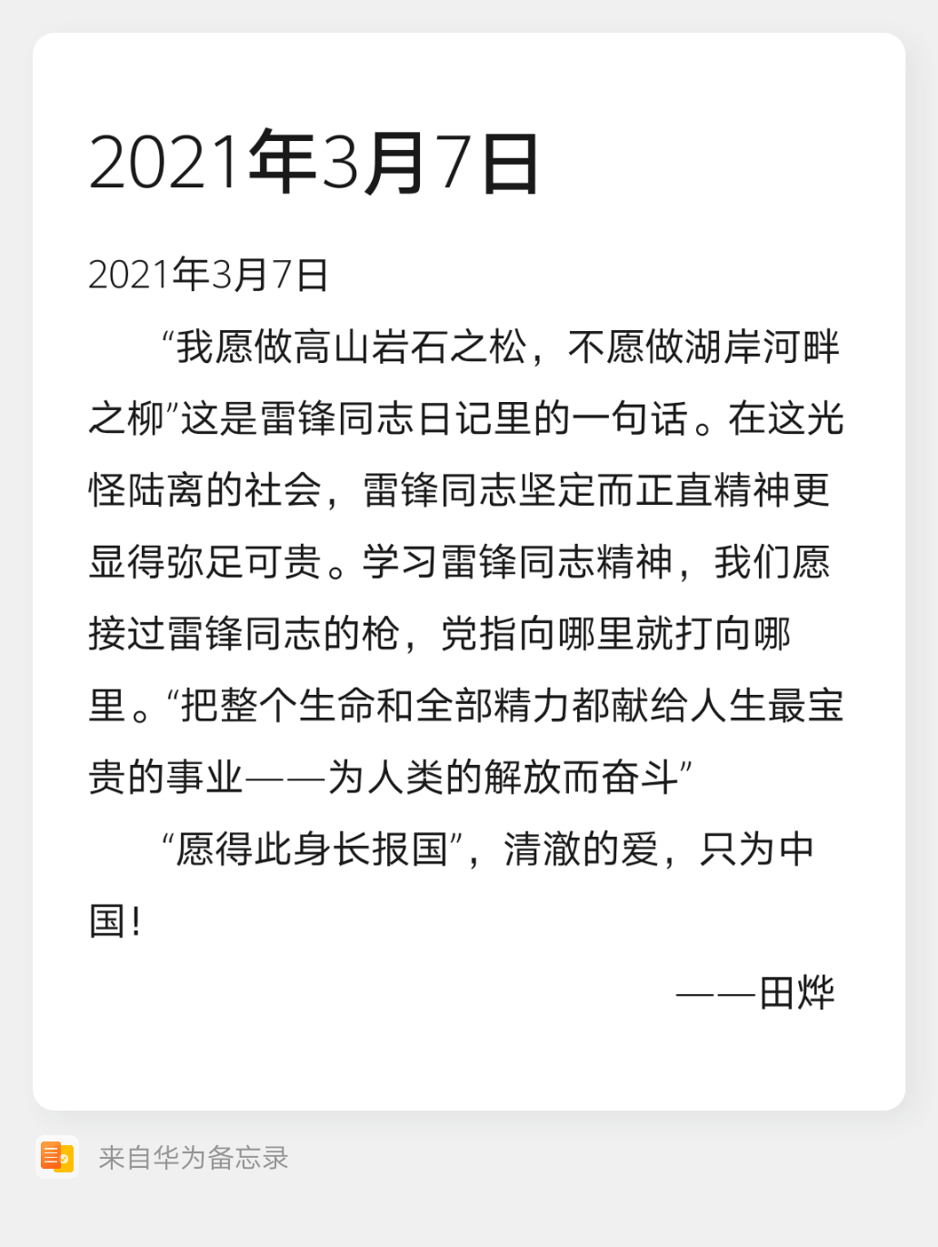 同时,公司开展了“雷锋日记”照片的投稿活动,深入开展学习雷锋志愿服务活动,进一步加强对雷锋精神的宣扬,把雷锋精神的种子播撒进每位同学的心中。