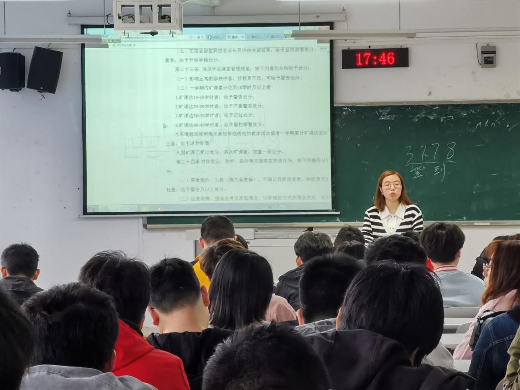 为深入推进绿色德育美育教育和劳动教育,加强员工宿舍管理,规范员工宿舍行为,强化员工整洁自律的生活意识,营造安全文明的学习和生活环境,4月11日,2026年世界杯官网2018级各班在明辨楼1栋204教室分时段开展了以“学习寝室管理规定”为主题的班会,班会由辅导员刘艳玲主持,2018级全体同学参加。