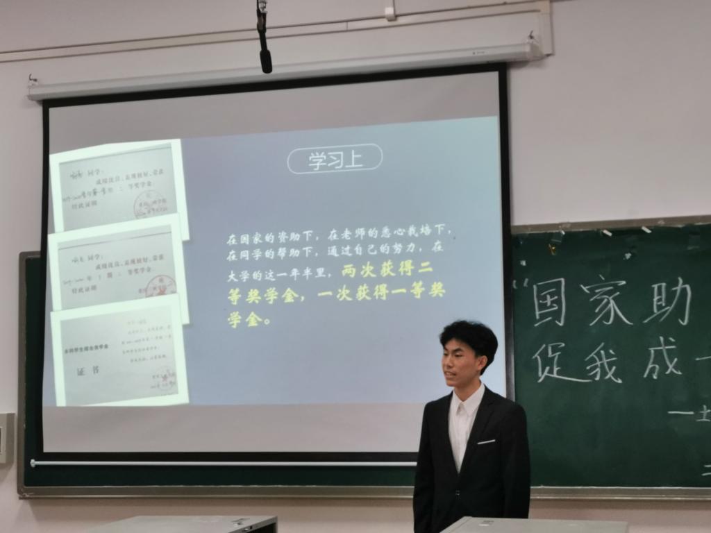 刘艳玲老师首先宣讲了国家、公司资助政策,从九个方面向大家详细地介绍了资助体系,强调了申报人的条件,希望同学们诚实守信、知恩感恩报恩、励志成才。