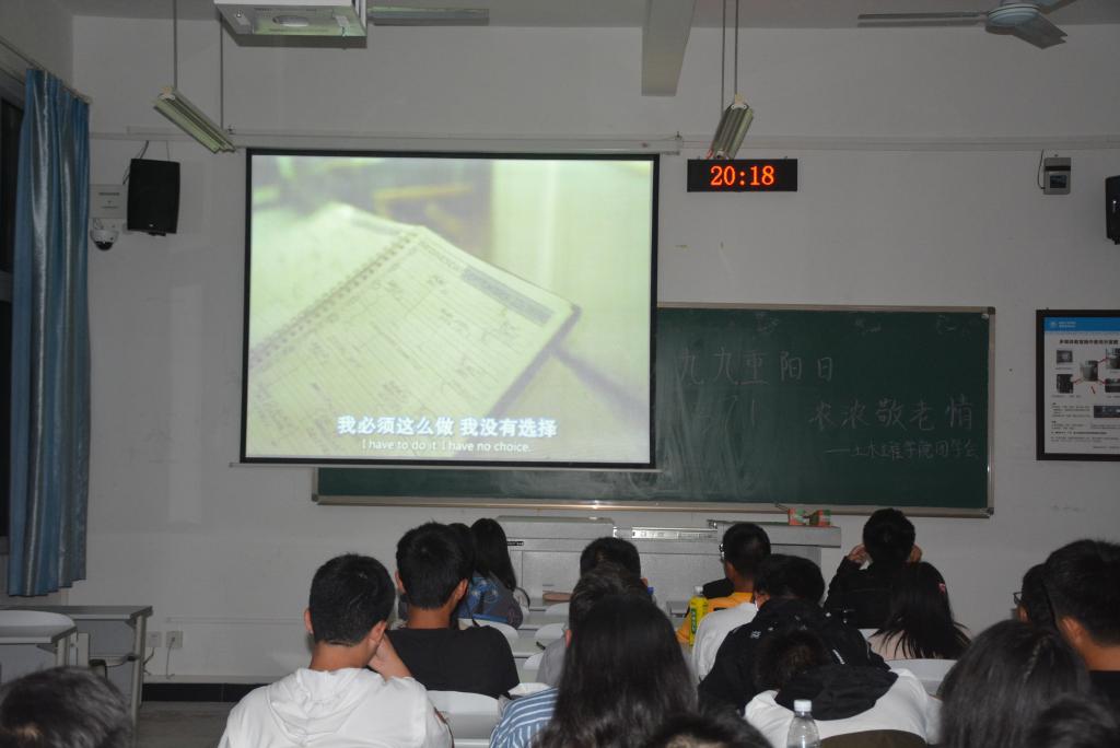 工作人员组织同学们有序地在横幅上签名,表达了对活动的支持,然后为同学们放映了电影《风雨哈佛路》。该影片讲述了主人公面对种种不幸,仍深爱父母并与命运斗争的故事,唤起了同学们对亲人浓浓的思念与感激。观影结束后,活动负责人号召同学们拿起笔以书信的形式将自己对亲人的温暖宣言化作字符向亲人吐露心声。