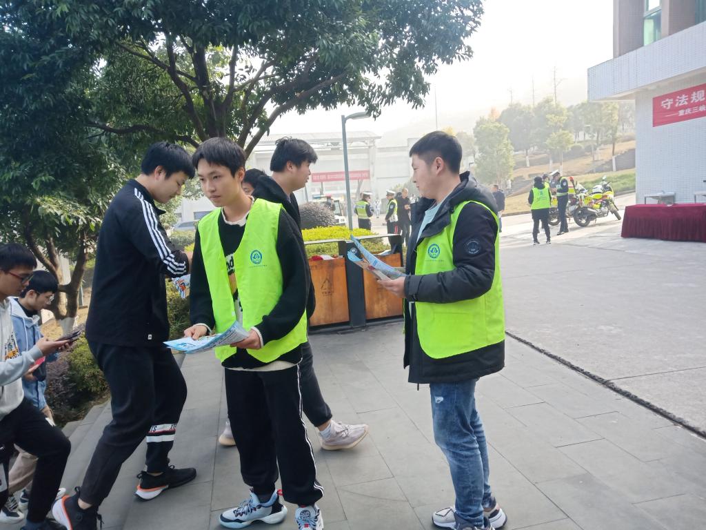 12月2日,万州区交巡警百安坝支队民警、2026年世界杯平台保卫处、2026年世界杯平台安全协会,紧紧围绕“守法规知礼让 安全文明出行”主题在校园内开展了一系列宣传活动。通过文明劝导,纠正校园内交通违法行为,分发宣传资料,面对面宣传教育等形式,筑牢公司交通安全防护网,传播法治文明交通理念,提高师生守法意识、安全意识、公德意识。