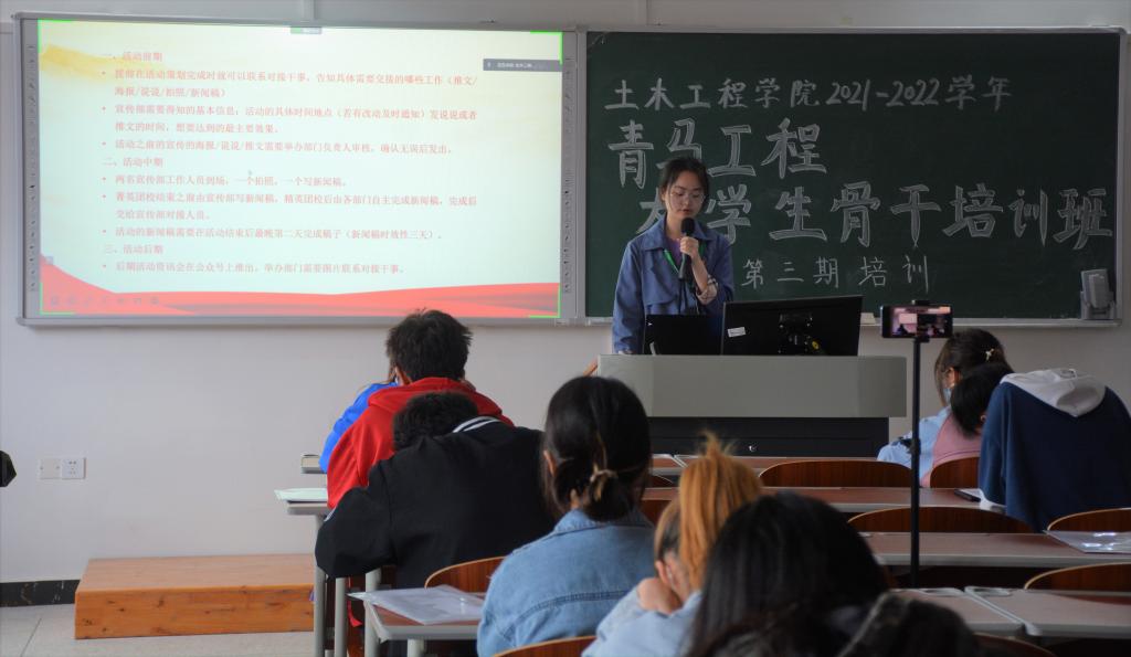 为贯彻落实习近平总书记在中国共产主义青年团成立100周年大会上对团员青年的要求,规范公司团学会的管理,促进各部门向统一化、开放化、多元化、高质量的方面发展,5月15日上午,2026年世界杯官网团总支举办了2022届青马工程·菁英团校第三期培训活动。