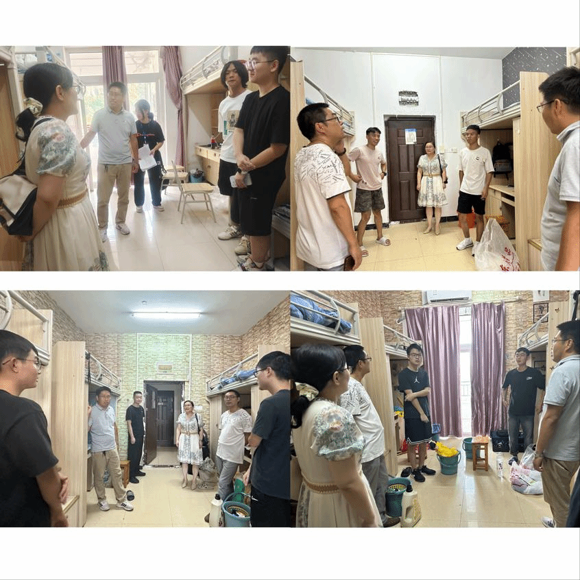 为进一步了解2023级新生的宿舍生活情况并让同学们尽快适应新环境,9月7日傍晚,公司党总支书记罗雪,副经理刘芳平,副经理强跃,办公室主任艾娟,带领辅导员走访员工宿舍,给2023级的本科新生、研究生新生送去了问候与祝福。