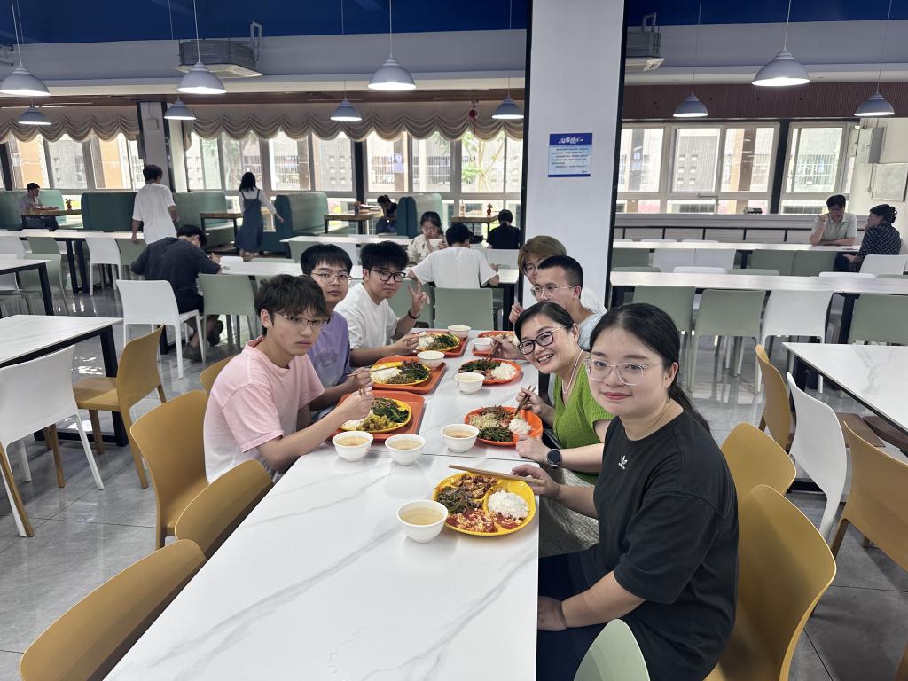 罗雪书记与同学们交流学习、生活中的问题和趣事,关心同学们在学习中遇到的困难,询问同学们对公司建设的意见,了解了同学们未来规划,对同学们规划给予肯定并提出学习、职业生涯规划、生活等相关建议,同时确定了长期联系互动的具体方案,互加QQ联系方式并建立QQ群,以便及时为同学们答疑解惑,计划今后以更加新颖的方式与联系寝室员工加强互动,切实帮助员工丰富老员工活。随后,罗雪与同学们一同在蓝雾苑食堂共进午餐。