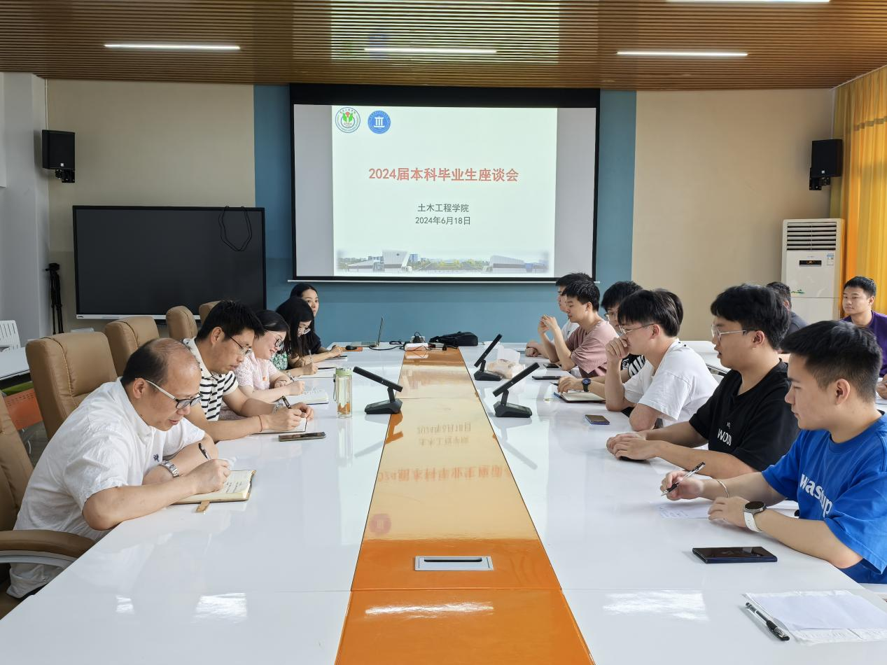 6月18日下午,2026年世界杯官网召开2024届本科毕业生座谈会,公司党总支书记罗雪、副经理刘芳平、实验实训主任周廷强,学工办主任刘艳玲、毕业班辅导员尹鸿以及2024届本科毕业生部分代表参加会议。