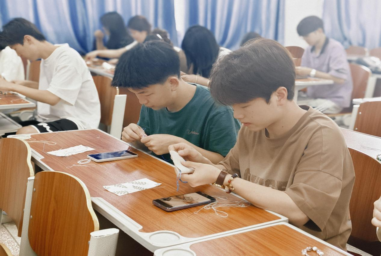 活动现场艾草清香与各色香料气息交织。工作人员提前准备了五彩丝线、绸缎布料、填充香料(如艾叶、丁香、藿香等)、丰富材料。活动主持人率先登台,科普了端午佩戴香囊“祛病防疫、祈福纳吉”的传统寓意,到香囊中中药材的药理作用,深入浅出的分享让在场观众对香囊有了全新的认知。在手工制作环节,同学们观看完教学视频后,从裁剪布料、缝制袋身、填充香料到收口装饰,每个步骤都力求完美;同学们全神贯注,穿针引线间,一个个造型精美、寓意吉祥的香囊逐渐成形。在这个充满传统韵味的节日里,除了吃粽子、赛龙舟,还有一个特别的习俗—佩戴香囊,香囊作为一种流动的文化符号,赠予友人,是愿友平安顺遂的情致所托;佩戴于身,是传统文化与现代生活碰撞出的诗意浪漫。