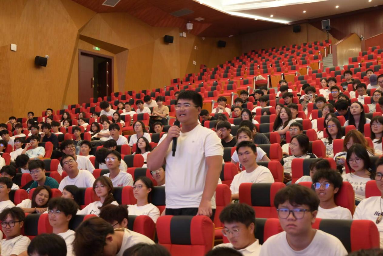 朋辈分享环节,2022级的唐道敏、欧慧玲以及2023级的古俊杰三位同学作为“员工助航”工程的在校衔接代表,结合自己的学习生活经验,为新生们提供了实用的建议。他们分享了如何平衡学习与生活、如何高效利用校园资源、如何准备学科竞赛等方面的心得,并鼓励新生们积极主动地向学长学姐请教,充分利用朋辈资源助力自己成长。现场互动环节,新生围绕职业规划、技能学习提问,助航氛围浓厚。