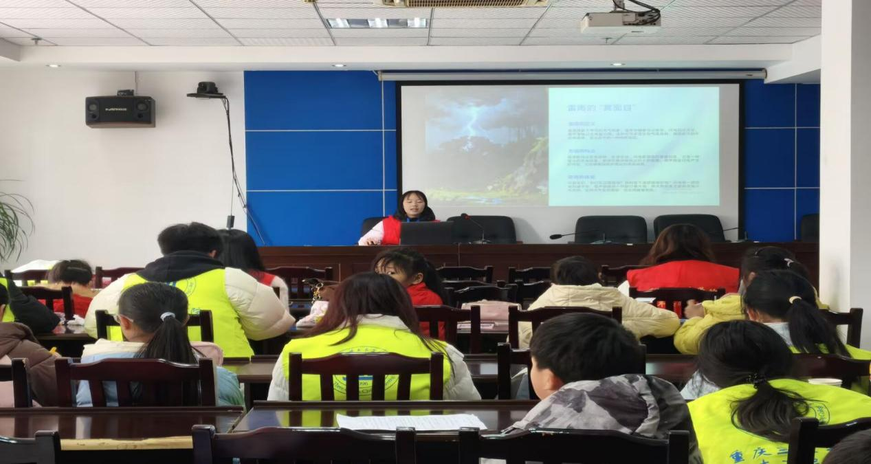 活动中,志愿者们不仅耐心辅导孩子们完成作业,组织趣味互动游戏,还特别策划了雷雨安全主题教育环节。通过精心制作的宣传PPT,志愿者以生动形象的图片和简明易懂的语言,系统讲解了雷雨天气中的安全知识和避险技能。