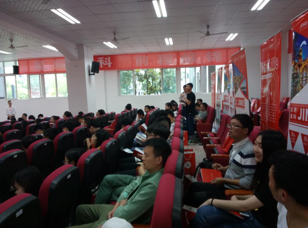 公司宣讲结束后是往届“金科之星”刘远洋和吴兴茂做经验分享,在他们的经验中,从业前的选择很重要,要从“行”、“业”、“司”三方面进行综合考虑,这样才能迈出成功的第一步;其次就是要注重“成就感”,刘远洋说到,“你不要害怕那个领域你不会不懂,要勇于挑战和学习,这样才能收获成功,才能体验到成就感”。