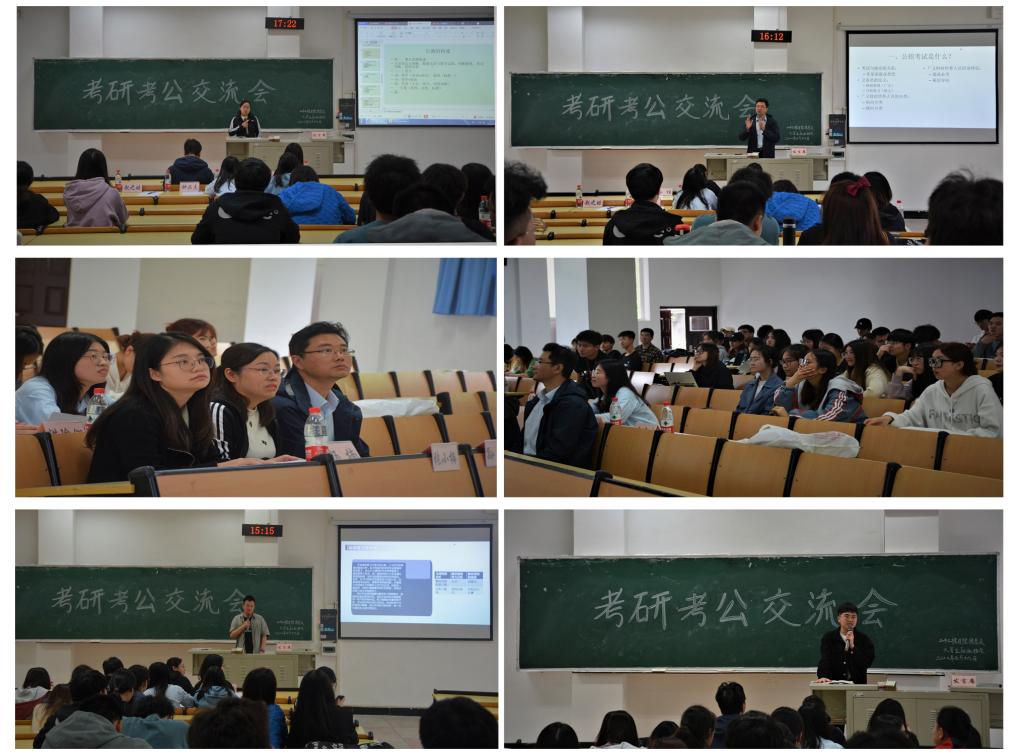 交流会上,考研员工分别结合自己的考研经历详细地给同学们讲解了考研的必要性和备考期间应该注意的问题,包括专业选择、公共课复习方法、考研计划、考研心态调整、时间安排以及复试技巧、调剂信息收集等方面的一些心得体会。洪瑜翎从备考、笔试、面试三个方面对国考进行分析,分享了公务员考试的具体流程和复习方法。同时,告诫同学们考研考公之路充满无尽艰辛,唯有坚持到底,才能取得最终胜利。