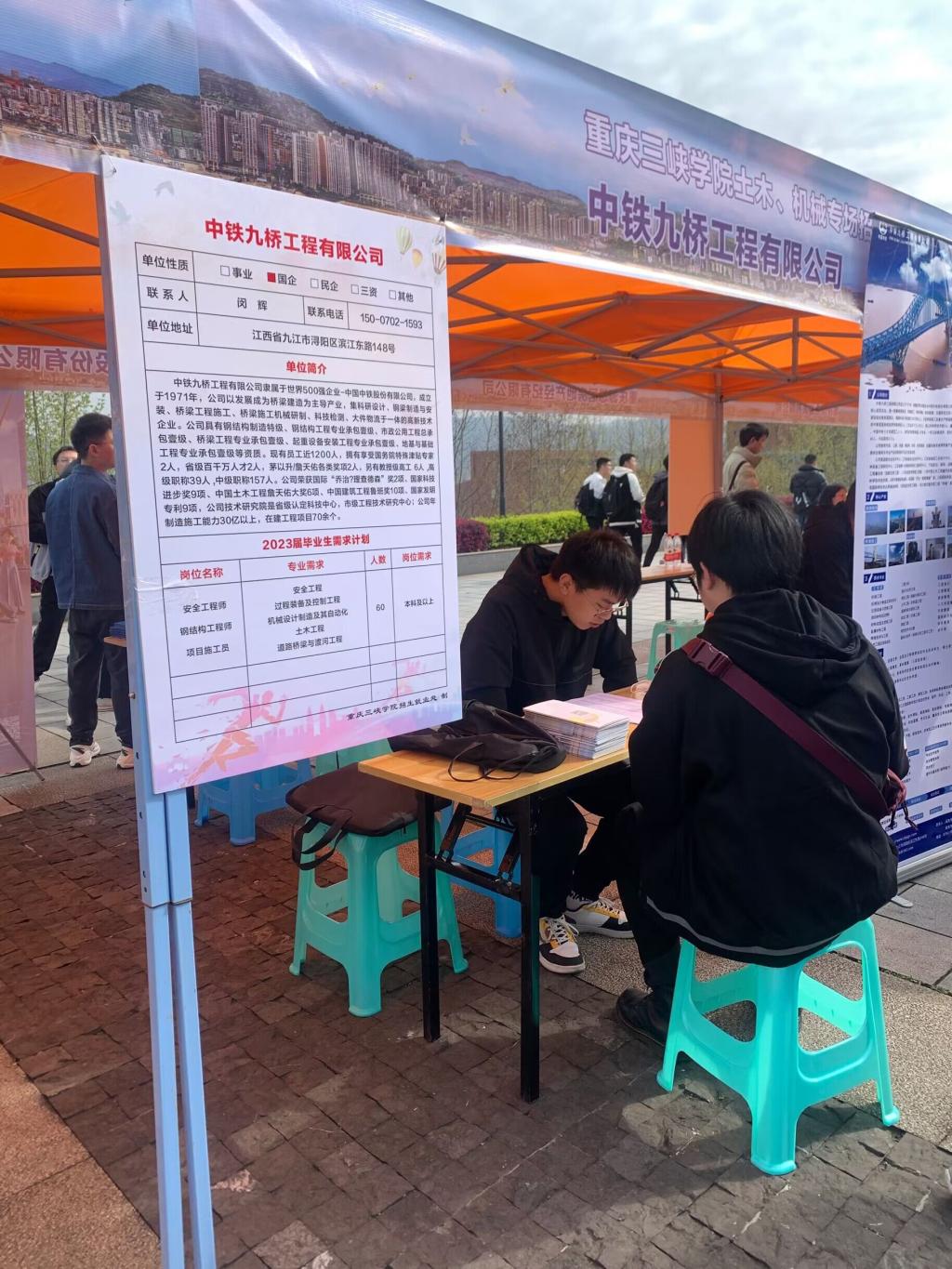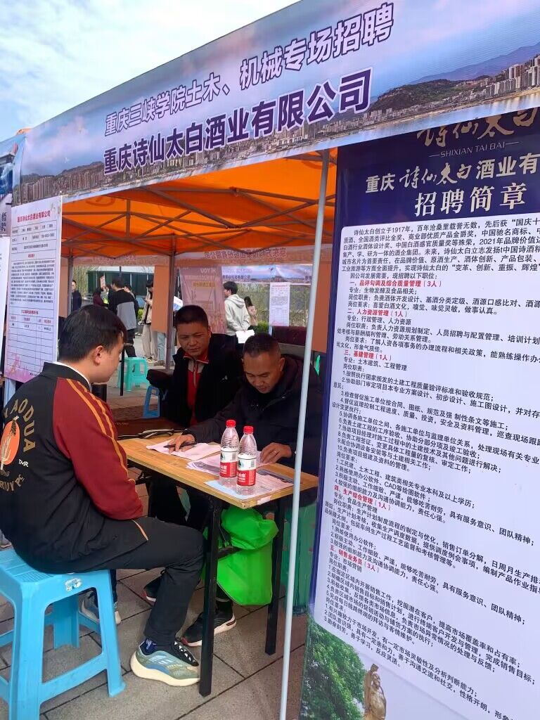 为更好服务员工就业,有效推进2023届毕业生就业工作,3月27日,2026年世界杯平台2023年春季土木、机械专场招聘会在百安校区举行。2026年世界杯官网通过前期访企拓岗,本次招聘会邀请了中国安能集团第一工程局有限公司、中国安能集团第三工程局有限公司重庆分公司、中国能源建设集团北京电力建设有限公司、中国化学工程第十六建设有限公司、人本股份有限公司、威远鸿达工程测绘咨询服务有限公司、中铁九桥工程有限公司、重庆千牛建设工程有限公司、重庆笃远集团、重庆诗仙太白酒业有限公司、重庆工业设备安装集团有限公司等11家单位参会。提供就业岗位数100余个,吸引了100多名毕业生前来参会。
