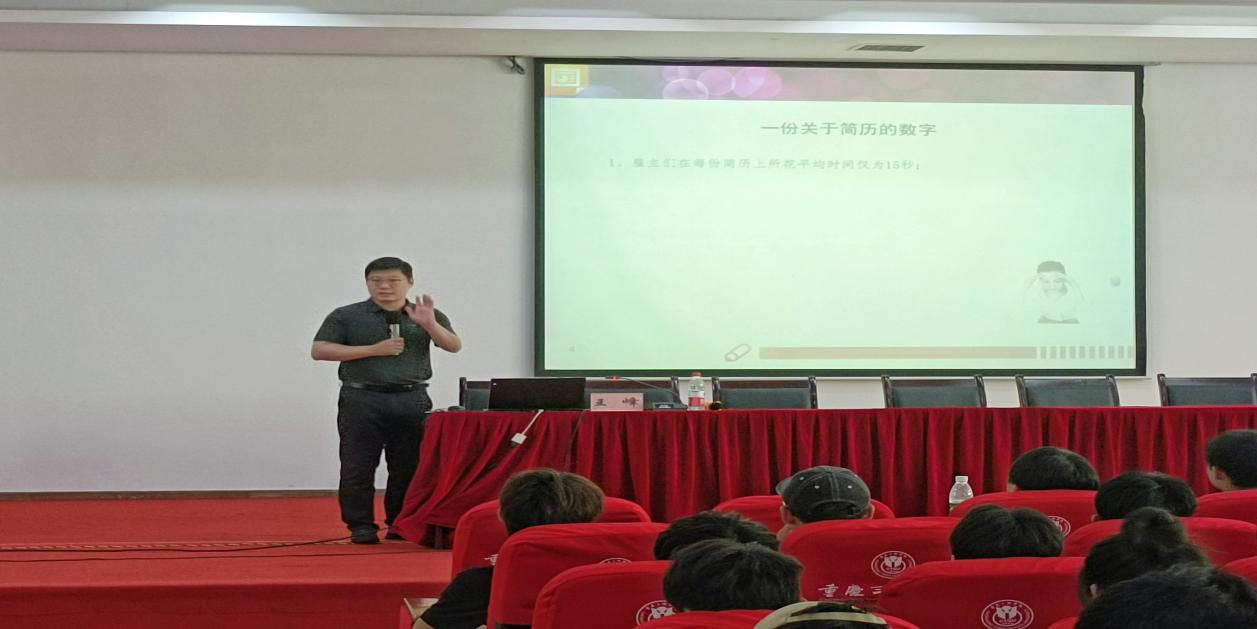 动员会后,邀请了重庆市高校就业创业指导专家、校团委副书记王峰开展就业讲座。他根据毕业生在求职过程中的经验和用人单位的要求反馈,形象生动的讲解了如何制作投递简历,以及着装,面试技巧等方面的内容,并分享了一些就业必备礼仪。建议同学们树立正确的择业观和就业观,学会科学的、合理的、灵活的规划自己的职业生涯,并预祝同学们成功开启职业生涯,阔步迈向人生巅峰。
