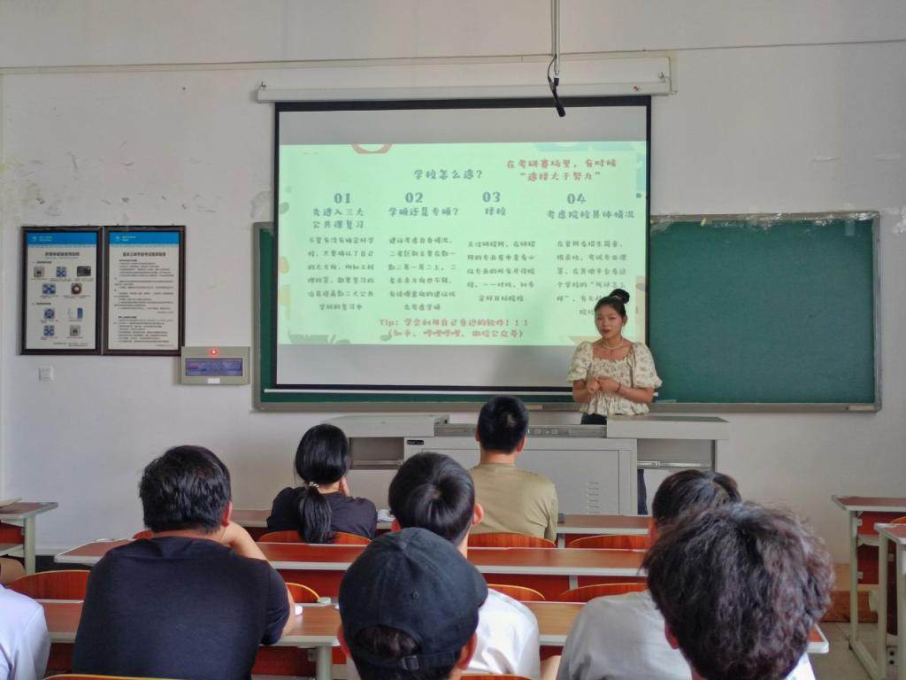 活动伊始,罗雪书记致辞,表达了对即将毕业的学长学姐们的美好祝福,并希望同学们把握当下,珍惜青春时光,明确自身目标,为自己的青春梦想努力拼搏。接着,2020级土木工程1班田祥解读了公务员考试的考试内容、题型特点以及备考计划。2020级土木工程2班郑越学姐、2020级土木工程1班刘晓文学长从考研现状、个人情况、学习方法与应试技巧、备考过程中压力缓解等方面进行分享。郑越认为,考研中日复一日坚持学习的毅力至关重要。2020级土木工程1班程瑞、2020级土木工程1班李国正根据自己的就业经历,讲解了职业准备、求职渠道、简历制作方面的问题。同时,他们在分享完自己的经历后,耐心地为同学们解答疑问。