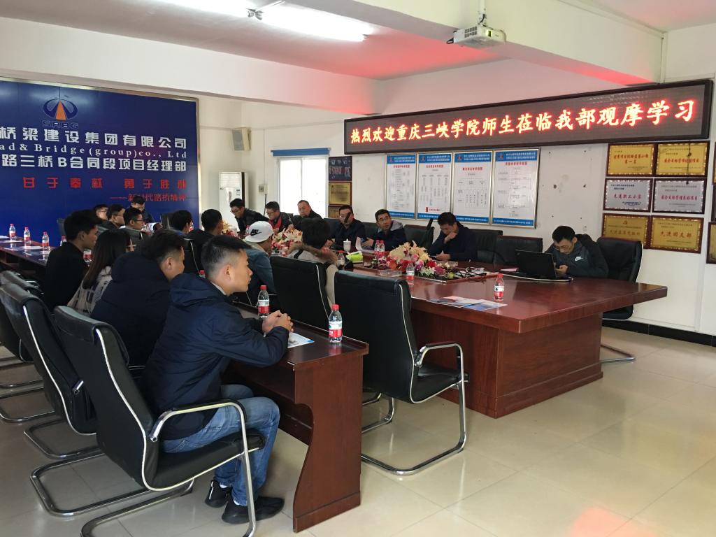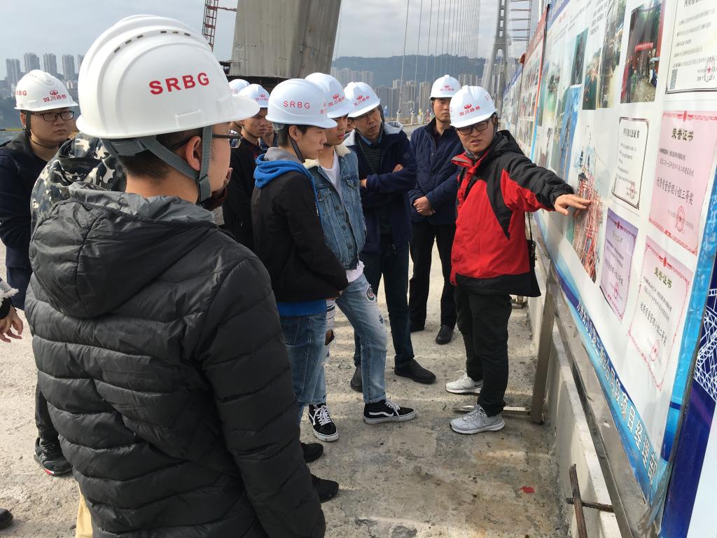 11月9日上午,公司党总支书记方灿,经理程龙飞,副经理郭远臣,教务助理闫磊,学工办主任洪鹏,2015级辅导员王刚,带领2015级安全工程专业11名毕业生,受四川路桥集团万州长江三桥项目部邀请, 前往参观学习。
