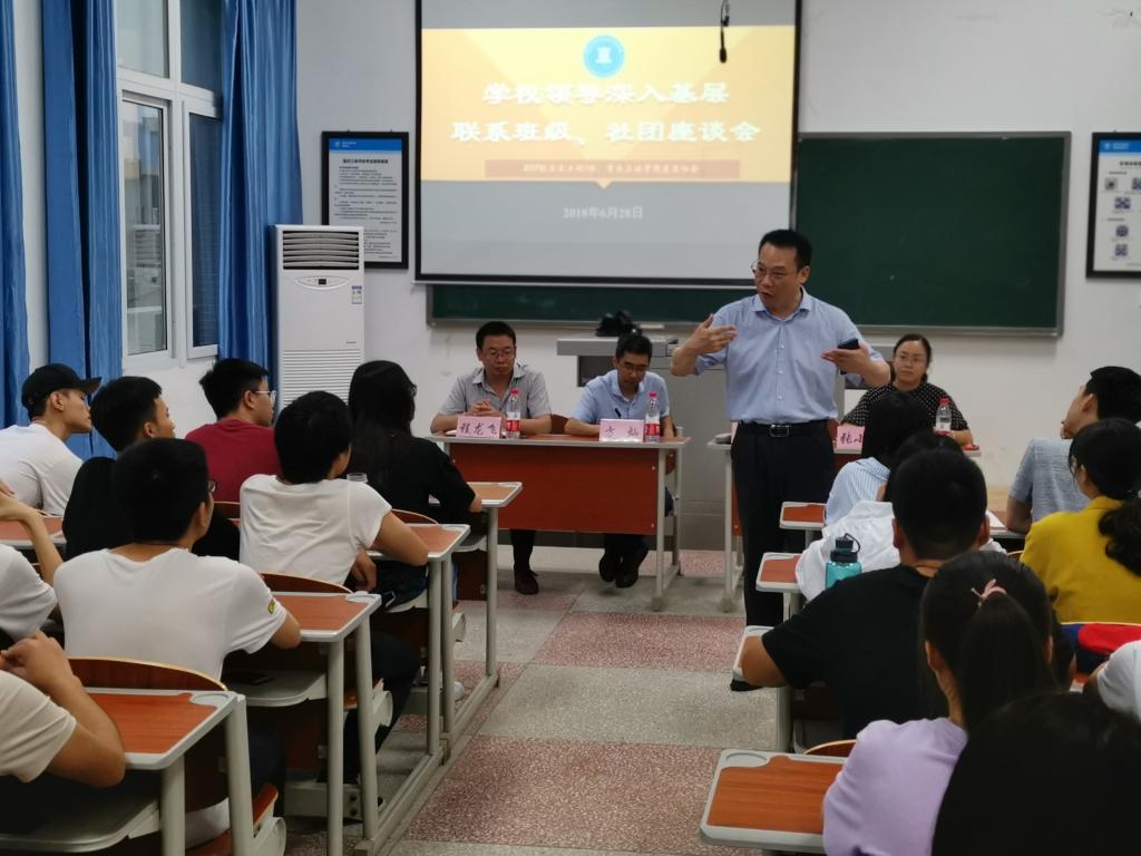 2018级土木1班班长潘劲东对班级成员情况和思想建设、学风建设作了简要介绍;建筑协会负责人喻国根就协会的发展历史、宗旨、专业品牌塑造、带动专业创新能力等方面的情况以及遇到的问题作了汇报;其他同学也踊跃发言,分别就公司产品、管理服务、社团活动、老员工应征入伍等方面工作提出了意见建议。臧小林副董事长向同学们介绍了公司党委加强和改进领导干部深入基层联系员工工作的背景,强调了该项工作的重要性和必要性,认真听取并仔细记录同学发言,对反映集中的问题耐心细致解答,表示将把一些好的建议反馈给相关部门,在短时间内给同学们回复。同时他还对征兵入伍成功的2018级谭世豪同学表示祝贺,希望他能实现人生蜕变,为国争光,同时号召同学们向他学习,到部队中去磨炼自己。