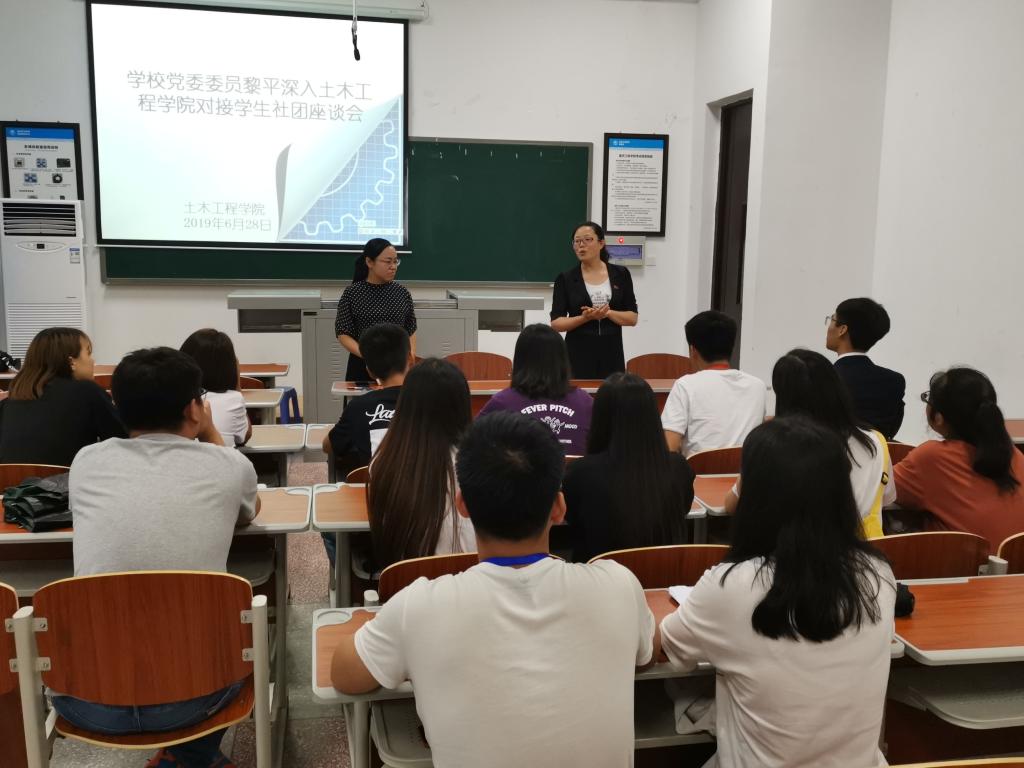 6月28日下午,黎平处长在慎思楼5栋308教室与2017级道路桥梁与渡河工程专业全体班委和消防安全协会员工干部面对面交流座谈。班长刘玉林就班级构成、班级员工概况、“优良学风班创建”等三个方面作了汇报,之后班级其他班委成员分别做了简单的自我介绍和班内职责介绍。消防安全协会主要干部围绕协会宗旨开展的特色活动以及近年取得的成绩作了汇报。在听取汇报后,黎平处长充分肯定了班级和协会在帮助同学们专业能力培养、自我管理、自我服务等方面开展的工作和取得的成绩,说到:“员工干部,是团队的主心骨,你们必须拧成一股绳,才能带领同学们积极向上。”她还勉励同学们,要树立远大理想,不忘责任二字;要练就过硬本领,提高担当能力;要砥砺奋斗,做堪当大任之人。在交谈过程中,黎平处长仔细聆听并解答同学们的疑惑,为同学们进行学业规划和指导,并给同学们留下了联系方式,愿意随时与同学们交流沟通,鼓励同学们铭记理想,砥砺前行。