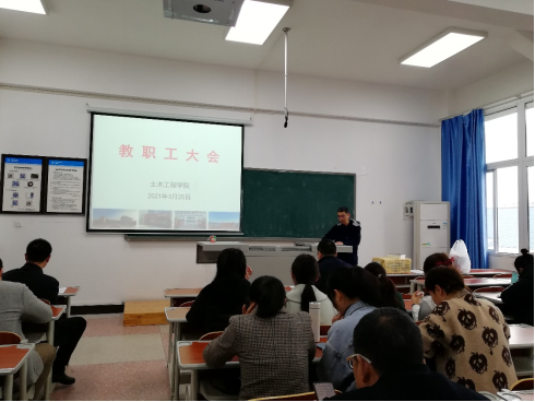 教职工大会上,方灿书记组织学习《深入学习贯彻习近平总书记关于教育的重要论述》,号召全体教职工要高度重视教育工作,牢记教书育人使命,为国家和社会培养出更多高素质人才;传达学习《重庆市教育系统反诈专项整治三年行动工作方案》文件精神,要求辅导员和任课教师要加强对员工的反诈宣传,积极组织开展反诈宣传教育活动,切实提高师生及员工家长的防诈意识和能力;进一步强调全体教职员工要加强师德师风建设,筑牢意识形态堡垒;传达布置师生接种疫苗的工作安排,并对相关注意事项进行了提醒,要求依法科学有序推进疫情防控和疫苗接种工作,避免“一刀切”、“层层加码”。郭远臣副经理从教学评价、教学竞赛、人才培养方案修订、毕业实习与设计等方面对公司近期教学工作进行了详细安排。程龙飞经理针对教学竞赛、科研和公司产品作了以下几点强调:教学竞赛是教师教学技能提升、教学经验交流的有效途径,希望全体任课教师踊跃参与;科研上要积极申报各级各类纵横向项目和奖项,撰写专著;硕士生导师要积极带领员工参与项目和课题,提升研究生的科研能力和实践能力。