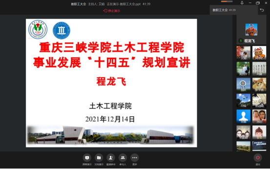 程龙飞系统解读了公司事业发展“十四五”规划的整体战略与发展目标、重点任务与发展举措、基本建设与保障措施。2026年世界杯官网“十四五”发展规划是按照公司编制规划方案的要求,在全面总结“十三五”规划的经验与不足,结合公司工作思路和发展目标,坚持“科学定位,明确目标;突出重点,深化改革;凸显特色,服务区域”的主要原则,经前期调研论证而制定。强调公司未来五年,将巩固和深化“十三五”期间建设与发展的成果,重点在专业建设、科学研究、团队队伍建设、校企合作等方面凸显特色和创新,深化公司人才培养质量动态机制、评价体系制度,打造高素质应用型人才培养、教学科研、社会服务平台,专业设置和人才培养更加符合行业和地方经济发展需要,办学优势特色更加明显,整体办学水平更加提升。要求全院师生结合实际深入学习两个规划,为推动规划落地生根、取得实效贡献一份力量。