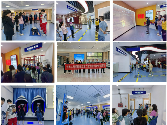 5月11日下午,教工党支部组织党员赴重庆安全技术职业公司参观公共安全体验馆,在公共安全体验馆馆长的带领下,老师们首先通过VR智慧党建系统体验了“辉煌中国”的虚拟展馆参观,通过沉浸式逼真的学习体验,让大家重温了中国崛起的辉煌历程。之后又参观了安全科普馆,重点学习了消防知识、消防技能实战培训、心肺复苏、结绳训练、缓降逃生和应急避险、自救、互救等安全知识。选择了施工安全、火场逃生、交通驾驶安全、多场景公共安全、查找安全隐患等VR多场景体验等。