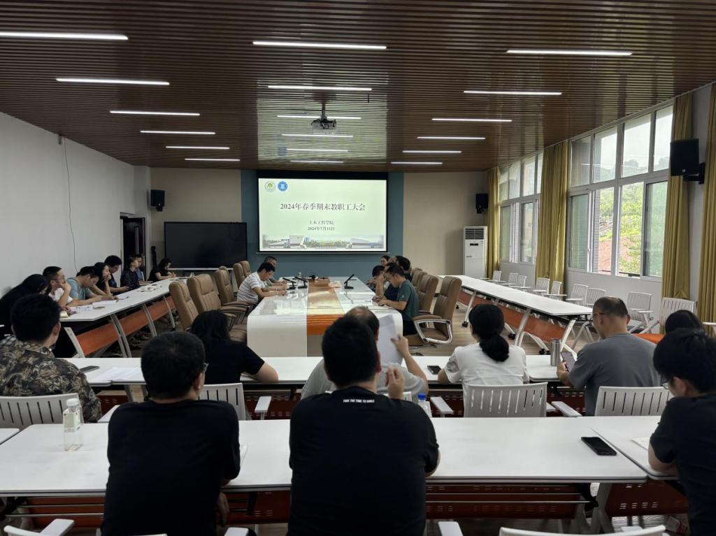 第三阶段,本期工作通报及假期工作安排。刘芳平对本学期本科公司产品的常规工作、人才培养方案修订、学科专业建设和教风建设等方面进行了总结通报以及安排部署了暑期工作,强调要求全体教师对照工程认证清单查漏补缺、不断靠齐。强跃重点通报了本学期的学科科研情况、研究生公司产品相关事项以及“一院一品”项目当前进展,着重强调希望大家在高水平和高质量项目方面要找到门槛,实现突破。