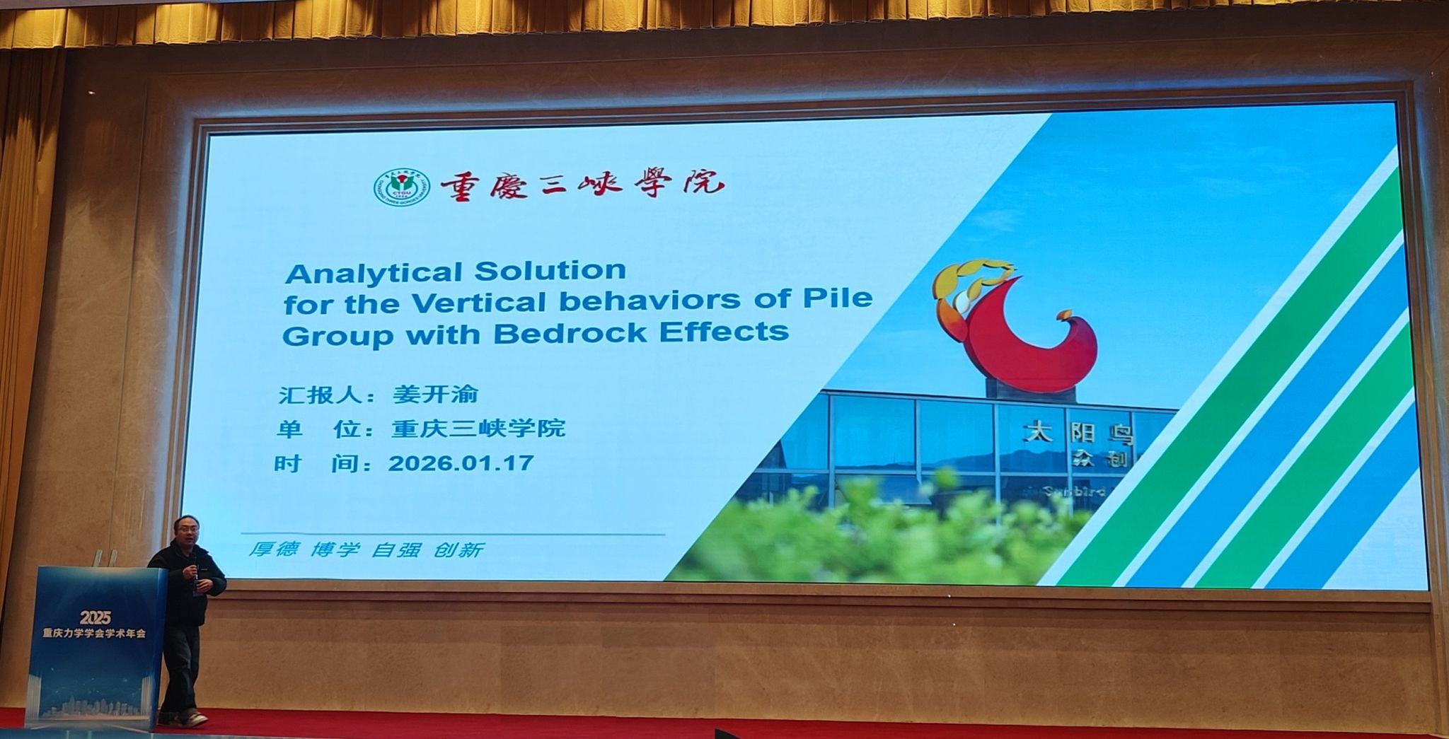 会上,公司青年教师申纪伟、王正成、姜开渝分别作特邀学术报告,聚焦桥梁振动能量俘获、固废轻质土研发、群桩基础计算等前沿方向,详细介绍了公司在相关领域的创新成果与实践应用,充分展现了公司在力学及土木工程交叉领域的科研实力与人才培养成效,赢得了与会同仁的广泛关注与高度认可。