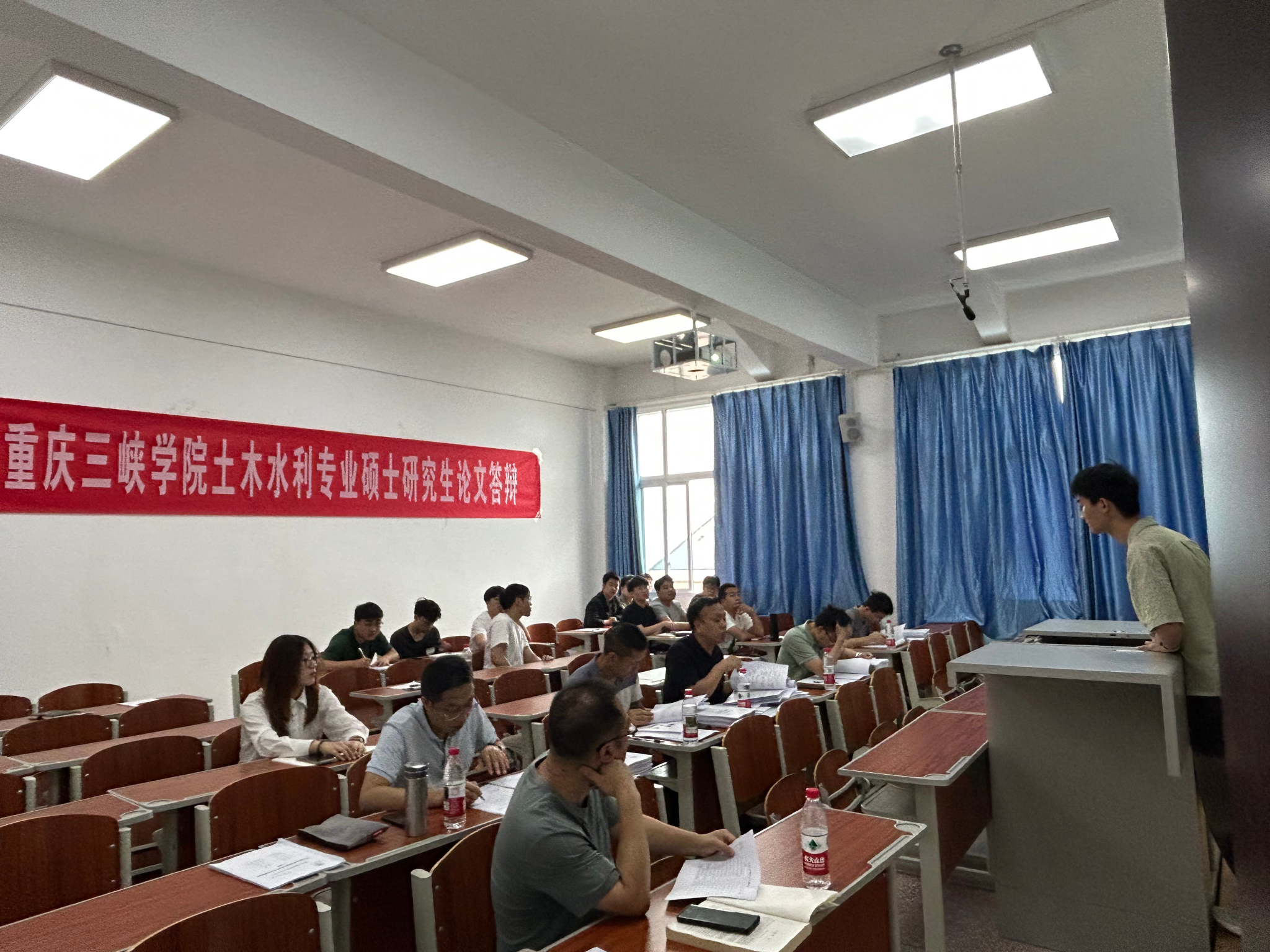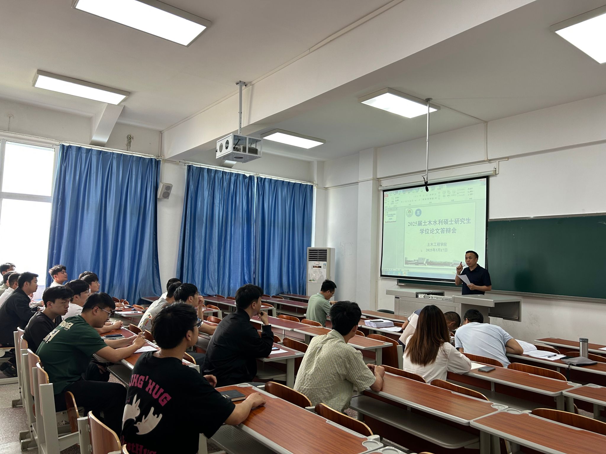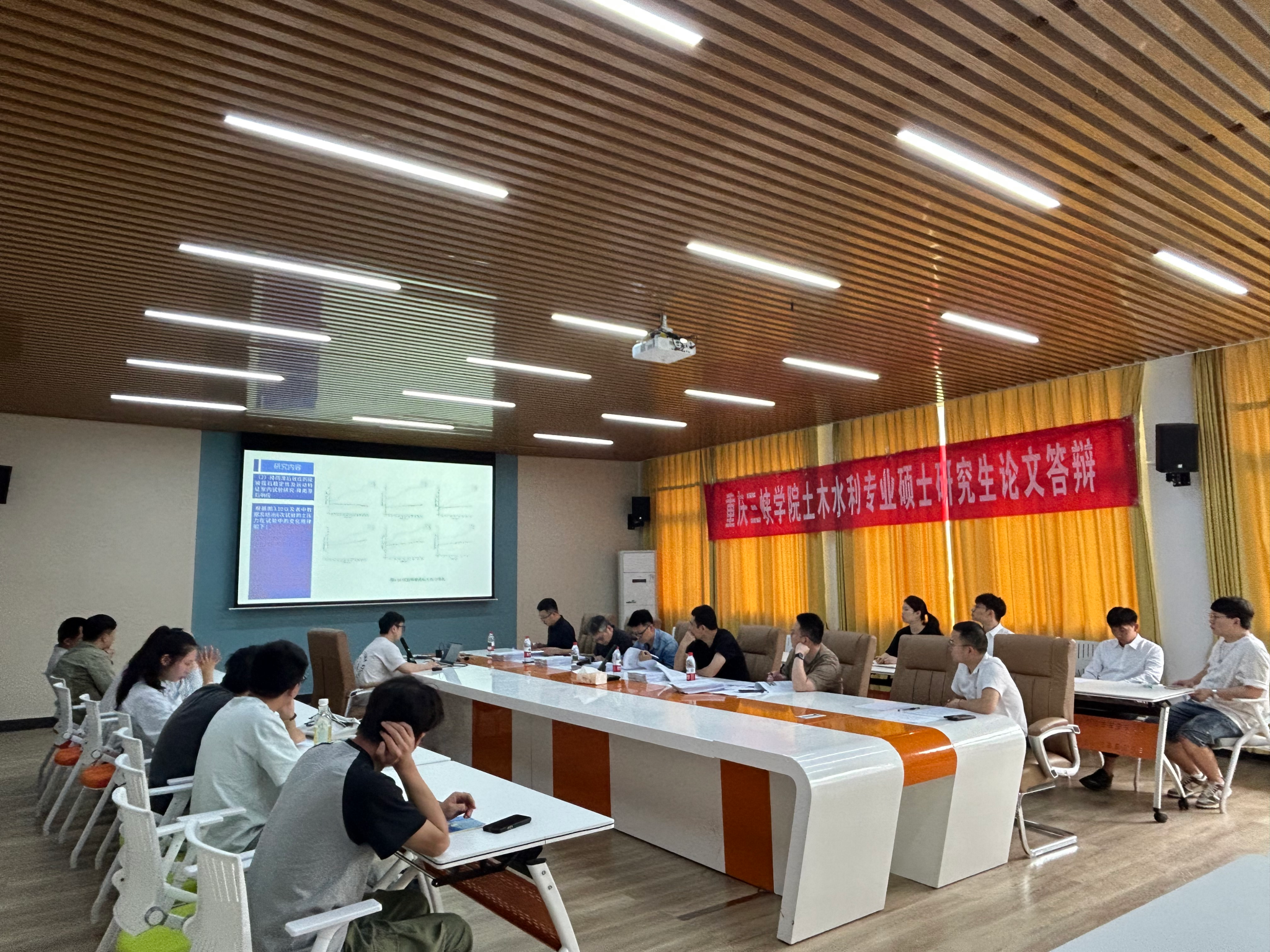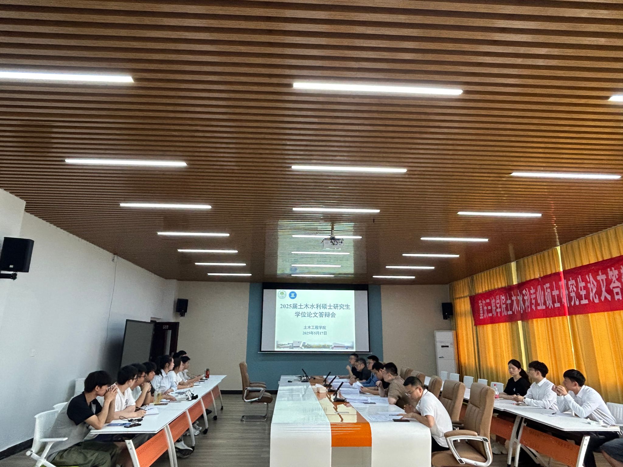 5月17日下午,公司2025届土木水利硕士研究生学位论文答辩工作在慎思楼5栋520会议室和523教室同步进行,本次答辩会邀请了重庆安全技术职业公司孙辉副教授、重庆市万州区规划和自然资源局蒋光强高级工程师、中交一公局第三工程有限公司王起龙高级工程师和荣传龙高级工程师担任校外评审专家,闫磊教授、邹建华教授、董利飞教授、何建副教授、熊礼全副教授、魏兴副教授担任校内评审专家,答辩秘书由郭正超副教授和姜开渝博士担任,公司2025届24名硕士研究生参加了此次答辩会。