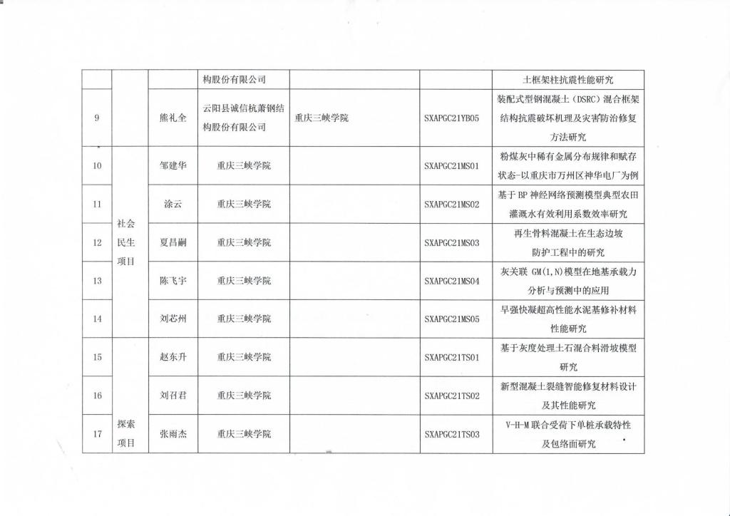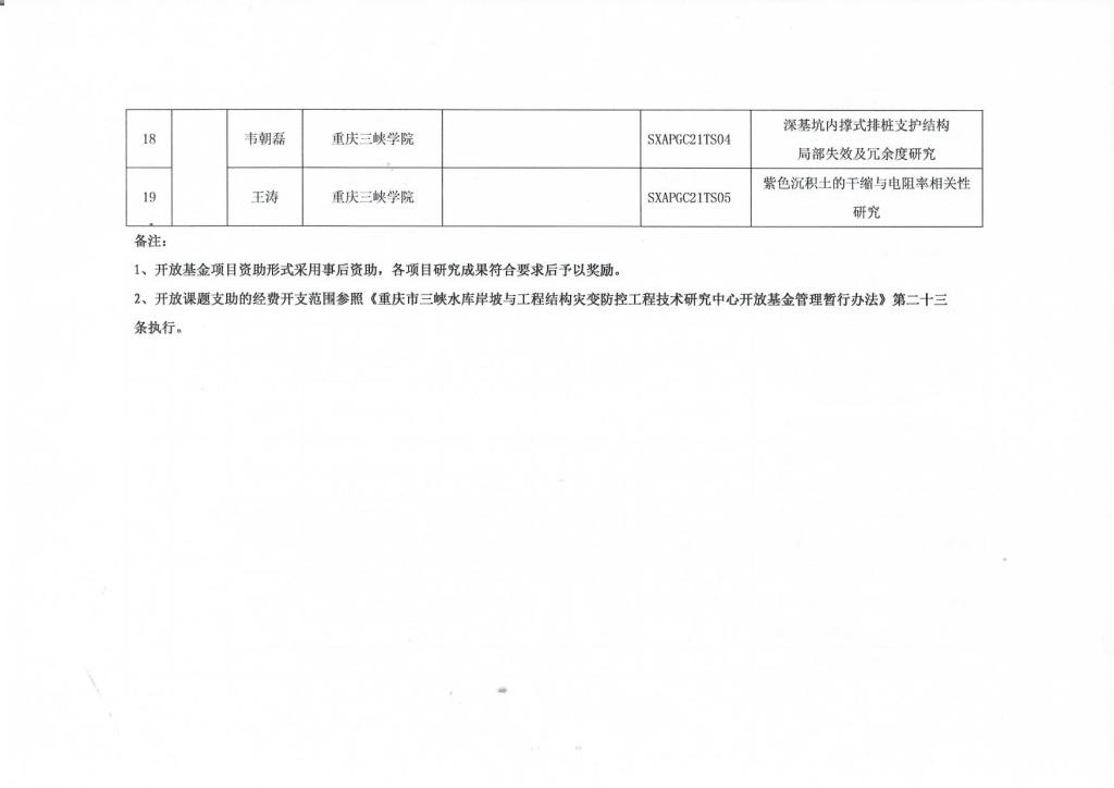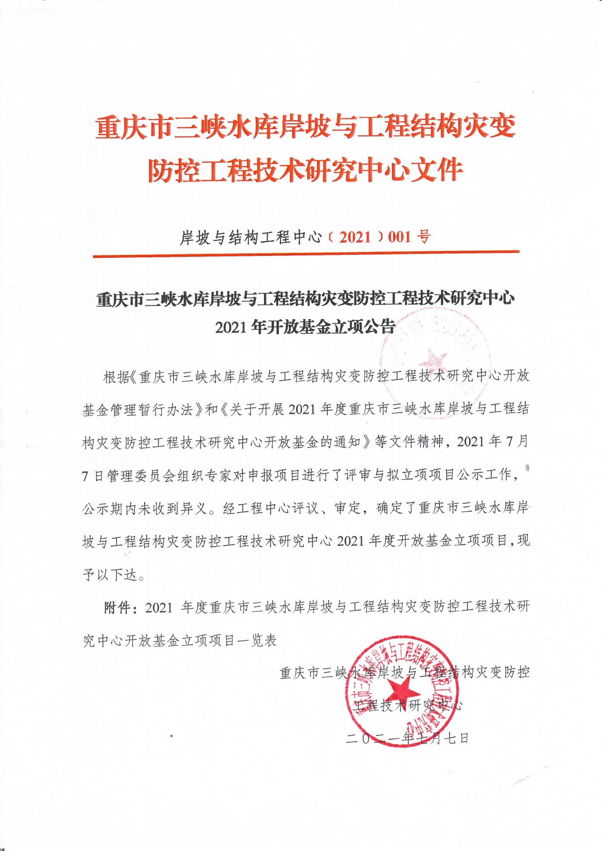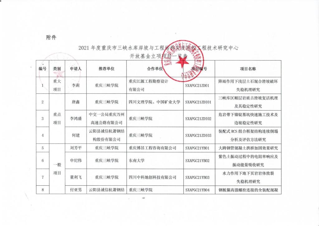 重庆市三峡水库岸坡与工程结构灾变防控工程技术研究中心2021年开放基金公告