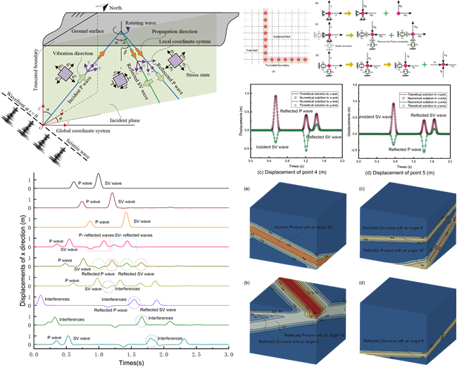 与地上结构不同,地震作用下隧道结构受到岩层强烈约束,衬砌破坏多聚集在洞口及断层破碎带。基于地震波在断层附近复杂的散射、反射等传播方式,致使地震波输入具有显著的时空变异性。分析地震波非一致作用(行波效应)产生的横向地震响应规律,揭示穿越活动断层隧道工程强地震动及其破坏效应;研究不同岩层地震入射波类型、入射角等特性,建立粘弹性人工边界和地震作用输入方法,构建跨断层隧道抗震分析的静-动力耦合围岩-结构体系模型。进一步,揭示断层破碎带隧道结构损伤机理,提出不同类型断层作用下隧道结构易损性评估方法。