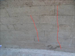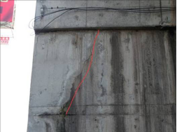 照片 5-28 入城大道5号桥15#台前墙斜向裂缝