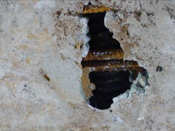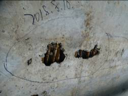 照片 5-9 入城大道4号桥L1#跨梁底板空洞露筋、露波纹管