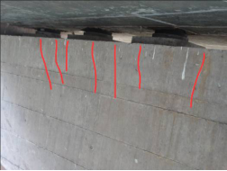 本次检查发现3座桥盖梁存在较多竖向裂缝。