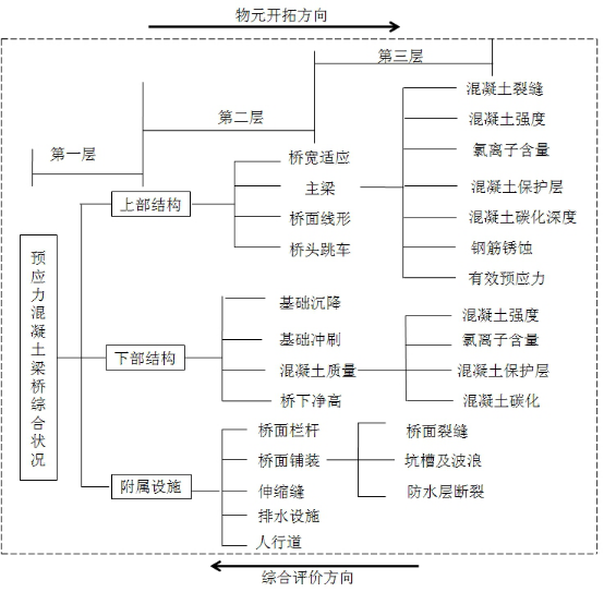 第一,物元发散思维在桥梁综合评价分层多指标体系开拓建立中的运用。
