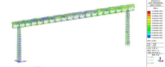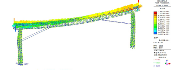 图11标准组合下灯桥最大轴向应力(单位:MPa)